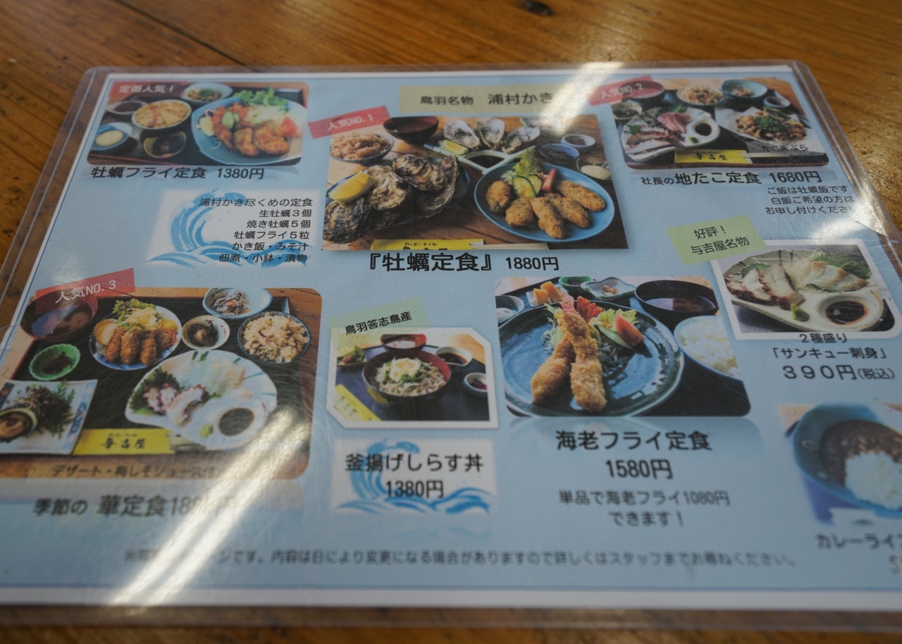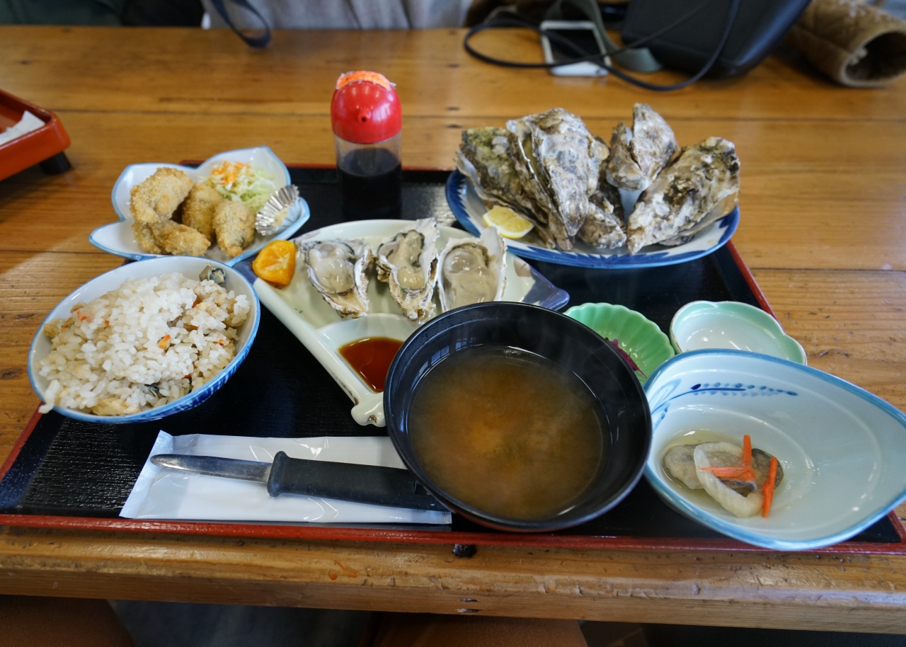 鳥羽市、冬の時期のおすすめ名物といったらカキ!テレビなどでも紹介され有名になってきた鳥羽市浦村地区には、牡蠣食べ放題のお店もたくさんあるのですが、牡蛎を食べるのが初めての子供たち、他のメニューもある与吉屋さんにしました。こちらは、カキ養殖加工工場の直営で予約すると焼きカキ食べ放題もあります。季節によってメニューが変わるようですが、冬のこの時期はやはり牡蛎!!とりあえず、大人2人が「牡蛎定食」を注文。私は社長が厳選したバージンオイスター浦姫(生かき)も注文。恐る恐る生カキ食べてみた子供たち、「ぼく、お腹空いてないんだよね」と言っていたのに、「牡蛎定食」の牡蛎ほとんど食べてしまい、更に焼牡蛎など追加しました。ここからすっかり牡蛎にはまってしまった子供たちです(笑)