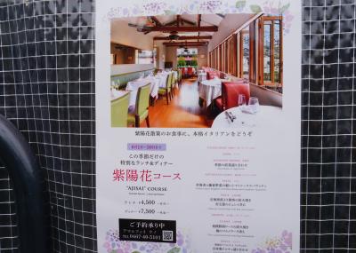 今回はせっかくなので『紫陽花コース』に。スープ、前菜、パスタ、お肉とお魚料理にデザートと美味しいものしっかり堪能コース。アルコールもいただきましたが、お料理どれもとっても美味しかったです- 旅行時期