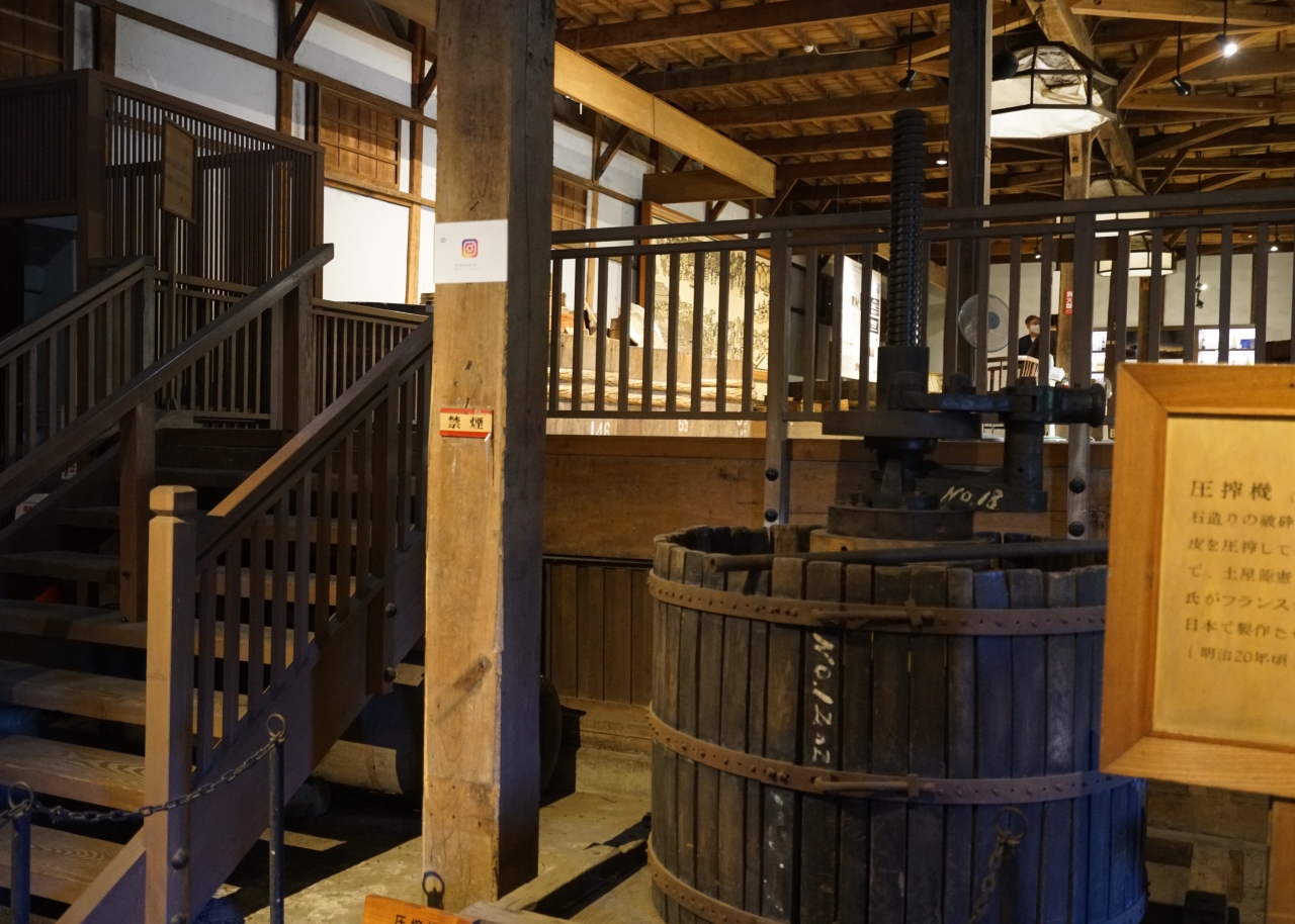 1904年に建てられた、現存する日本最古の木造ワイン醸造所が、現在『シャトー・メルシャンワイン資料館』として、一般に公開されており、明治期以降に実際にここで使われていた貴重な醸造器具や日本最古のワインの展示、ラベルの変遷など展示されており、