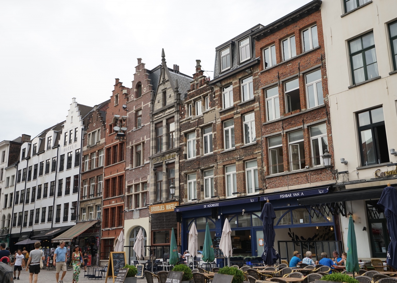 アントワープの中心的広場です。こちらのマルクト広場に面して建つアントワープ市庁舎。世界遺産にも登録されているイタリア・フランドル・ルネサンス様式の建物ですが、2018年4月より改修工事により、訪問時には見ることができず残念でした。
