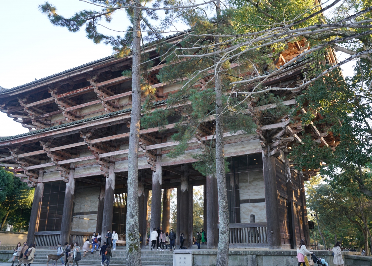 国宝の東大寺南大門。鎌倉時代に再建されたもので、その高さは約25メートルもあり、日本最大級の山門になり、何度訪れてもその大きさに感動!!長年風雨に耐えてきた木材の古色が威厳を感じさせます。門の中には、運慶、快慶ら慶派の仏師が1203年に造立した「金剛力士像」が安置されています。2017年秋、東京国立博物館で「運慶展」が開催され日本全国から運慶仏が集結しましたが、巨大な「金剛力士像」は当然出品されませんでしたし、今後も展覧会に出展されることはないと思われますので、こちらでゆっくり見てきました。