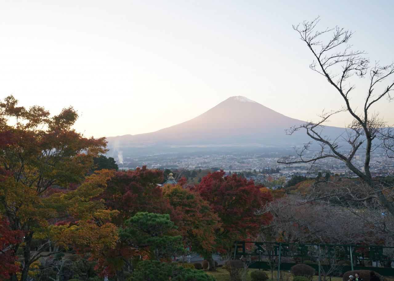 箱根から乙女峠を下ってくると富士山がきれいに見えたので富士仏舎利塔平和公園に寄ってみました。この「仏舎利塔」はインドの当時のジャワハルラール・ネルー首相から贈られたお釈迦様の分骨を納めるために建立されたものだそうです。公園内には絶景富士見台が設置されており美しい富士山をみることができます。富士山と紅葉のコントラスト美しかったです。