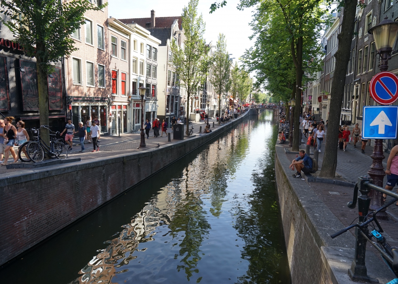 ツアーの自由時間でアムステルダムの街を歩きました。運河が流れる世界遺産の街、何処を撮っても絵になります。街歩きをしているとあちこちにコーヒーショップという大麻(マリファナ)を提供している店がでてきます。またキャンディーやアイスクリームなど大麻フレーバー(?)のお土産もたくさん売っています。ここアムステルダムでは大麻(マリファナ)も売春も合法のようです。ただ、一人で街歩きをしていても危険(スリなども含め)を感じるような街ではありませんでした。夜遅くまで日中のように明るい夏だからかもしれませんが・・・