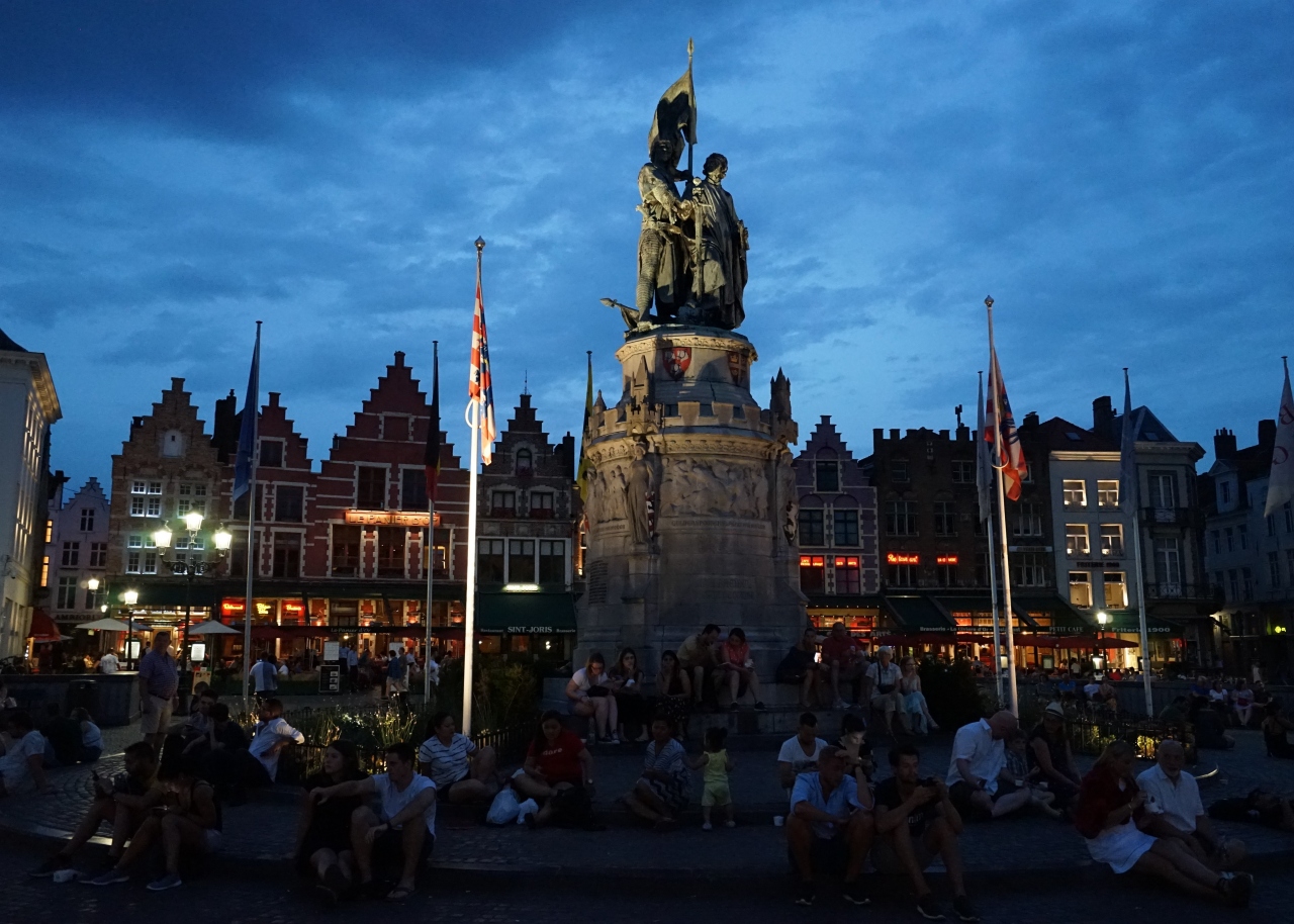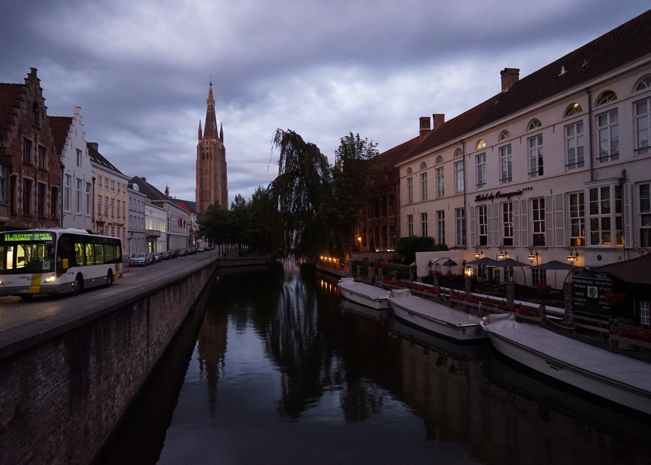 ツアーで世界遺産ブルージュの街に2泊しました。北のヴェニスとも呼ばれるブルージュは、ベルギーの海岸から10キロほど内陸にあり、世の古い街並みがそのままの姿で残っていて、石畳の路地が街を四角く刻み、水路が周囲を囲むように流れています。観光客も非常に多く絵になる街なのですが、人もいなくなり暗くなった街並みが本当に素敵です。絵本や映画の中世を歩いている雰囲気が味わえます。治安も良く深夜歩いても不安ありませんでした。