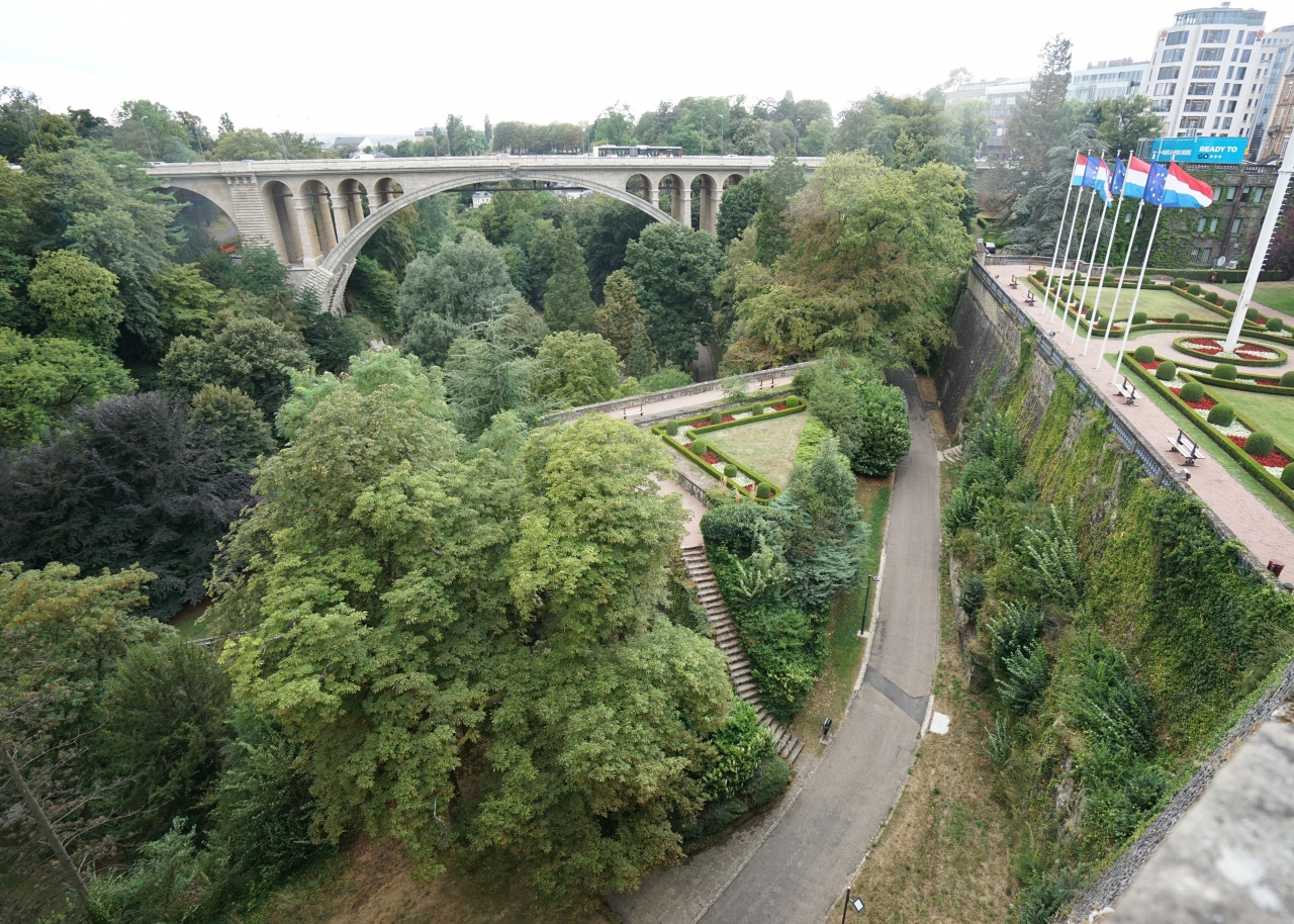 フランス、ベルギー、ドイツに囲まれたルクセンブルク大公国。その首都ルクセンブルク市の旧市街と要塞が世界遺産に登録されています。旧市街の憲法広場の東にある17世紀に建てられた壮麗なノートルダム大聖堂や大公宮などが見どころなんでしょうが、人口わずか57万で面積も神奈川県ほどしかないヨーロッパの小国にもかかわらず、20年以上連続で一人あたりGDP(国内総生産)が世界一という世界屈指の富裕国であり、その街並み自体が美しかったです。