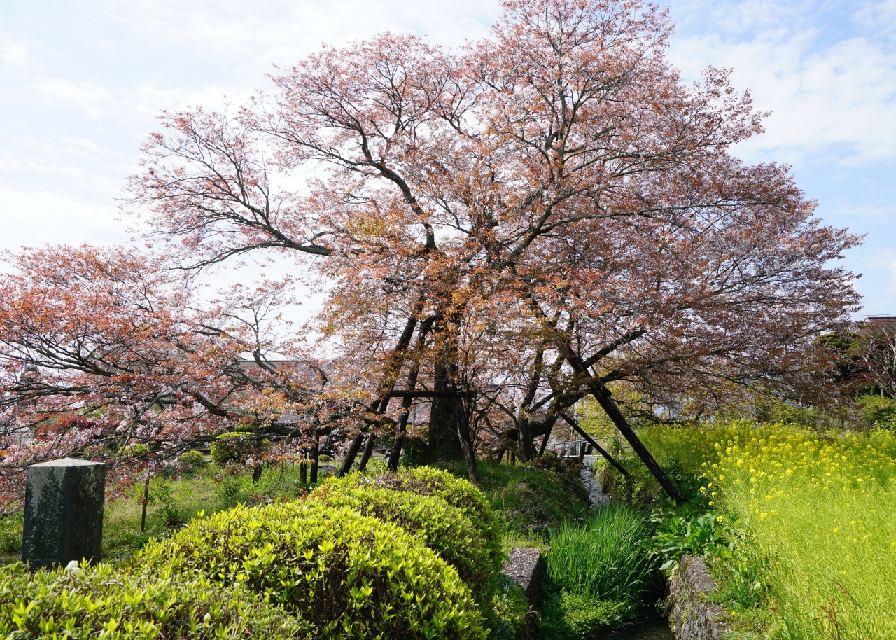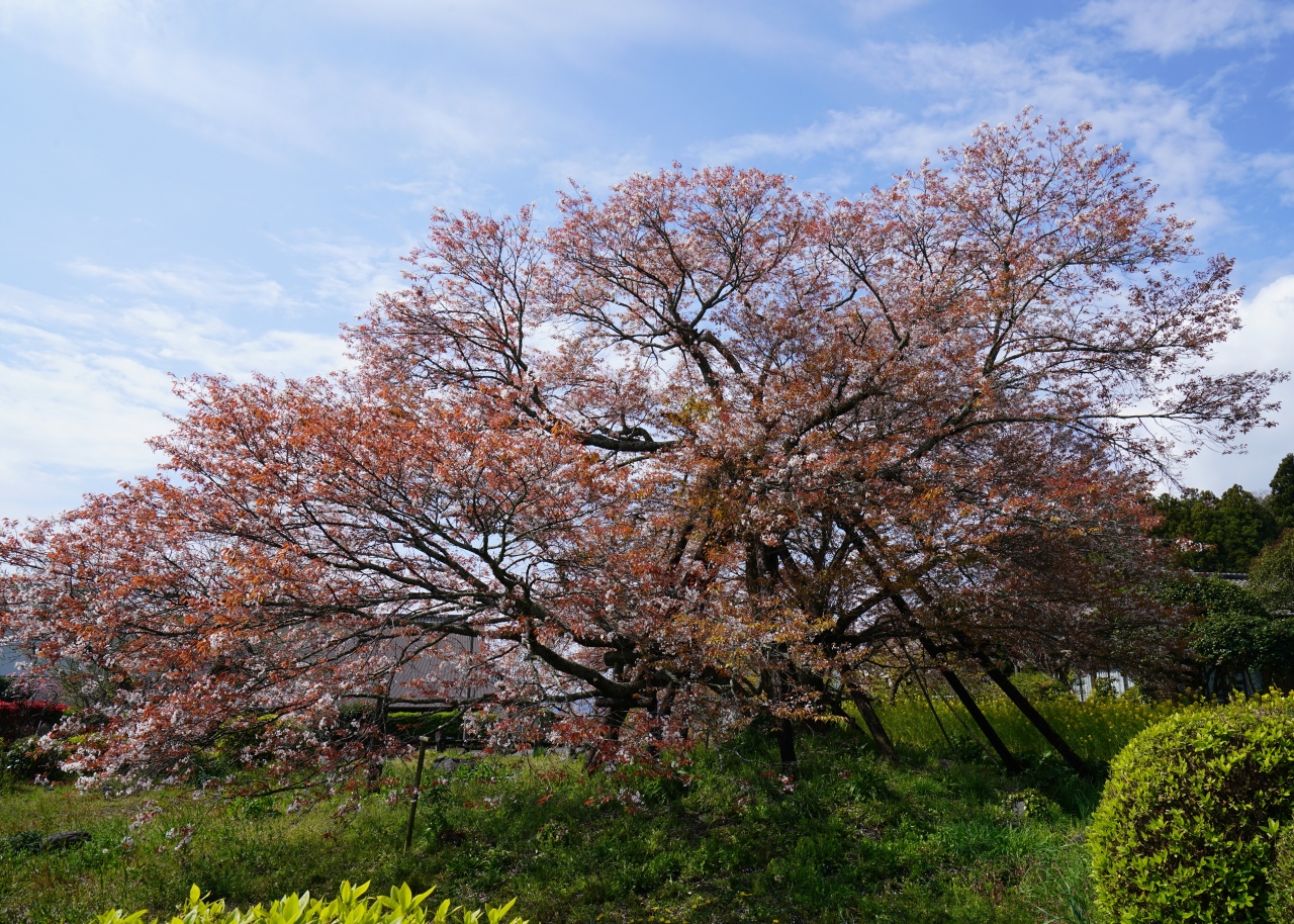 山桜の中では最古のものということで、日本五大桜では唯一特別天然記念物に指定されています。薄紅色の若葉と可憐な白花がなんとも美しい桜でした。訪れたときは富士山見えませんでしたが、天気が良ければ富士山をバックにした桜が見ることができます。- 旅行時期