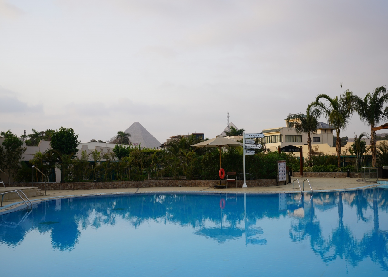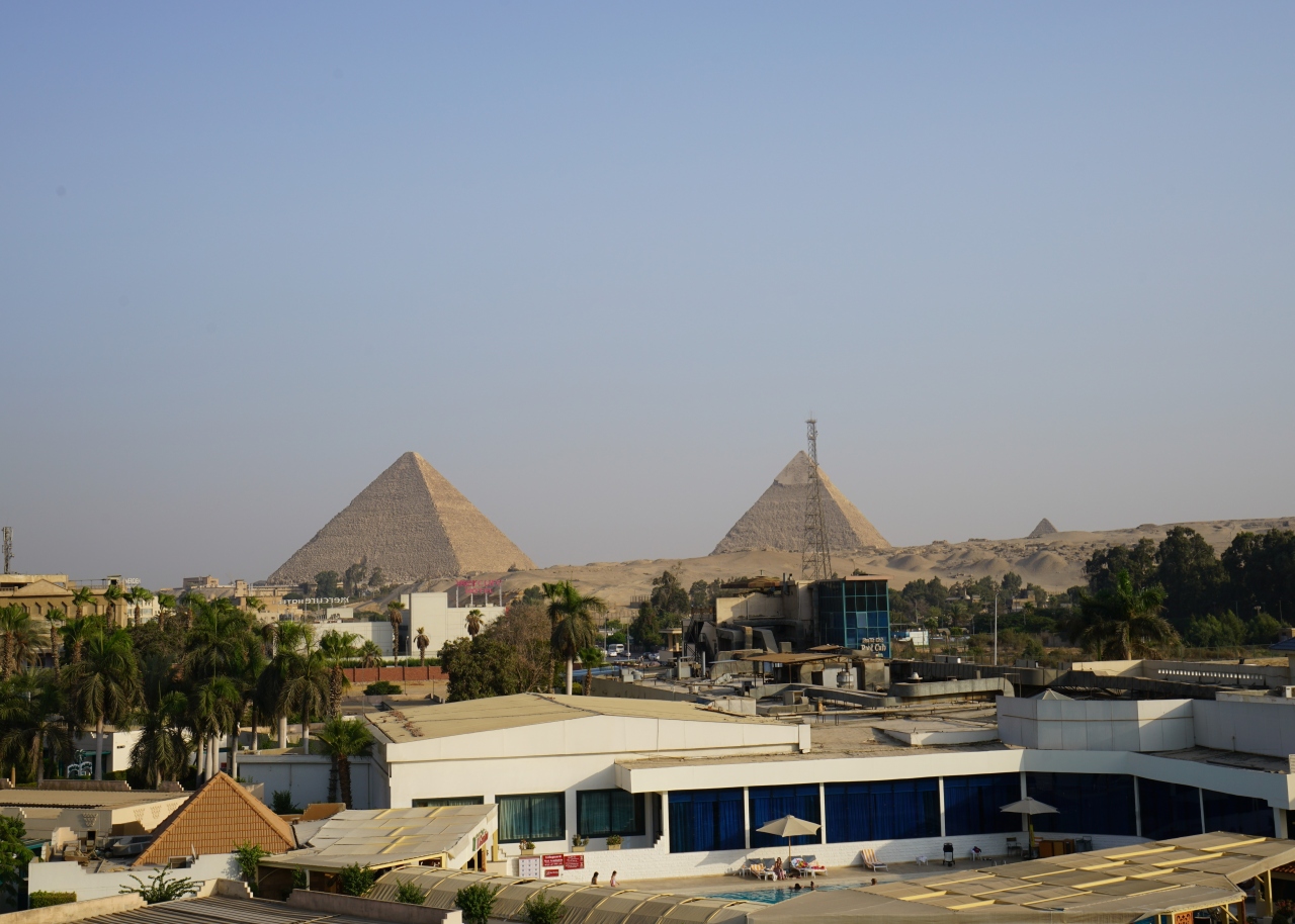 ツアーで利用したホテルですが、ホテルの目の前が、現在建設中の大エジプト博物館でした。ホテルは横に広く、部屋が一番端の方で、ロビーからかなり歩きました。部屋は一人では勿体無いくらいの広さで快適でした。部屋からの眺めは最高!!ベランダから三大ピラミッドすべて見えました。