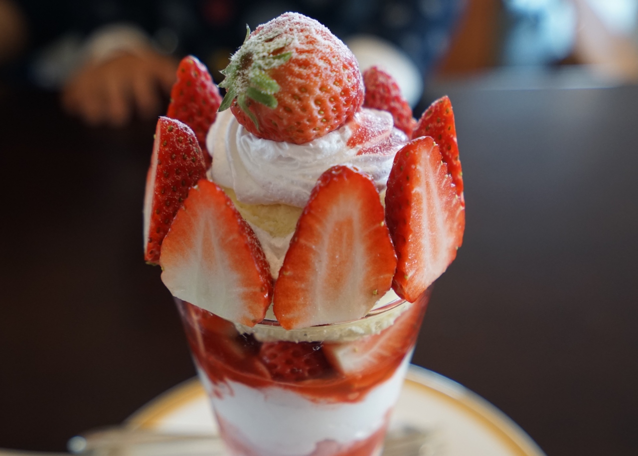 フルーツパーク富士屋ホテルの中にあるカフェですが、2~3カ月おきぐらいに静岡県から通っています。目的は季節のパフェ。春のイチゴ、初夏のブルーベリー、夏の桃、秋のブドウ、冬のマロンと季節ごとの絶品パフェが楽しめます。パフェの他にもワッフルや夏の時期のカキ氷なども美味しいです。