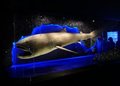 地元の水産卸業者さんが運営する水族館。こちらは港八十三番地も運営されてます。最近オープンしたばかりだと感じていたのですが、2011年12月オープンということなので、8年以上経っています。今回は、甥っ子たちが遊んでいる「あつまれどうぶつの森」でシーラカンスが出現するらしいのですが、本物のシーラカンスが見たいということで連れていきました。歩いてもいける距離なのですが、小雨が降っていることもあり車で向かうと沼津港の駐車場は満車。コロナ自粛の朝9時前にもかかわらず、水族館もたくさんの観光が並んでいました。メインは、世界で唯一の冷凍保存のシーラカンスの展示で子供たちも興奮して見ていました。私が見たかったのが、7月18日より公開された「メガマウス」、体長5メートル、体重1トン弱あります。実はこれ昨年の1月、自宅の近所の海岸に打ち上げられたもので、約1年間かけて剥製が完成しました。迫力あります。