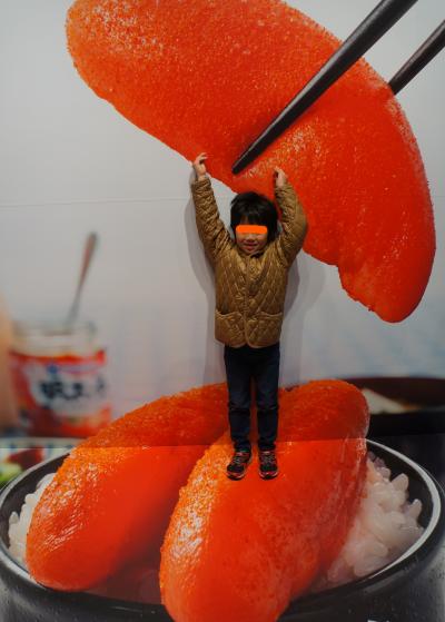 2018年12月にできた、かねふくめんたいパーク伊豆。明太子の老舗かねふくが運営する明太子専門テーマパークだそうですが、無料で見学できる明太子工場に、できたて明太子の直売店、めんたいミュージアムやフードコーナーなどあり子供も楽しめる施設です。フードコート的なところで、おにぎりとパスタをいただきました。おにぎりは1つ380円となかなかいいお値段ですが、大きくて中にはびっくりするほどたくさん具が入っていておいしかったです。