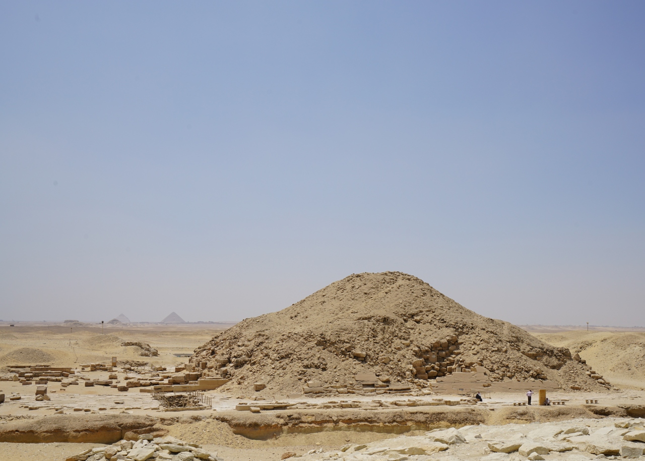 サッカラのジェセル王のピラミッド(階段ピラミッド)のすぐ南に位置するのが、第5王朝最後の王、ウナス王のピラミッドです。規模は小さくまるで瓦礫の山にしか見えませんでしたが、ピラミッド内部の壁面にピラミッド・テキストが初めて刻まれたことで有名です。内部には入ることができませんでした。