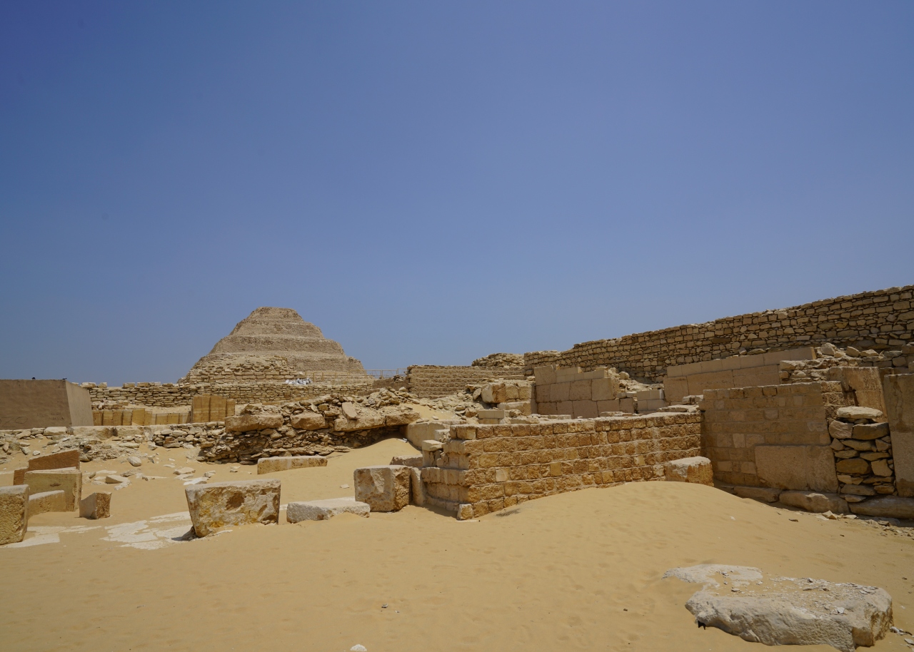 最古のピラミッドとされるエジプト第3王朝(紀元前2686年頃 - 紀元前2613年頃)ジョセル王の階段ピラミッドをみに行きました。ピラミッド・コンプレックスとはピラミッドや周辺の建築物のことでジョセル王のピラミッド・コンプレックスは高さ10m東西277m南北545mの外壁に囲まれています。入口の柱廊を出て広場にでると目の前に大きな階段ピラミッド。現在も大規模な改修が進んでいますが、この階段ピラミッドが史上初のピラミッドと言われています。もともとは1段のマスタバ(墳墓)だったところを、天才建築家のイムホテプが改修を行い、最終的にこの形に至ったそうです。