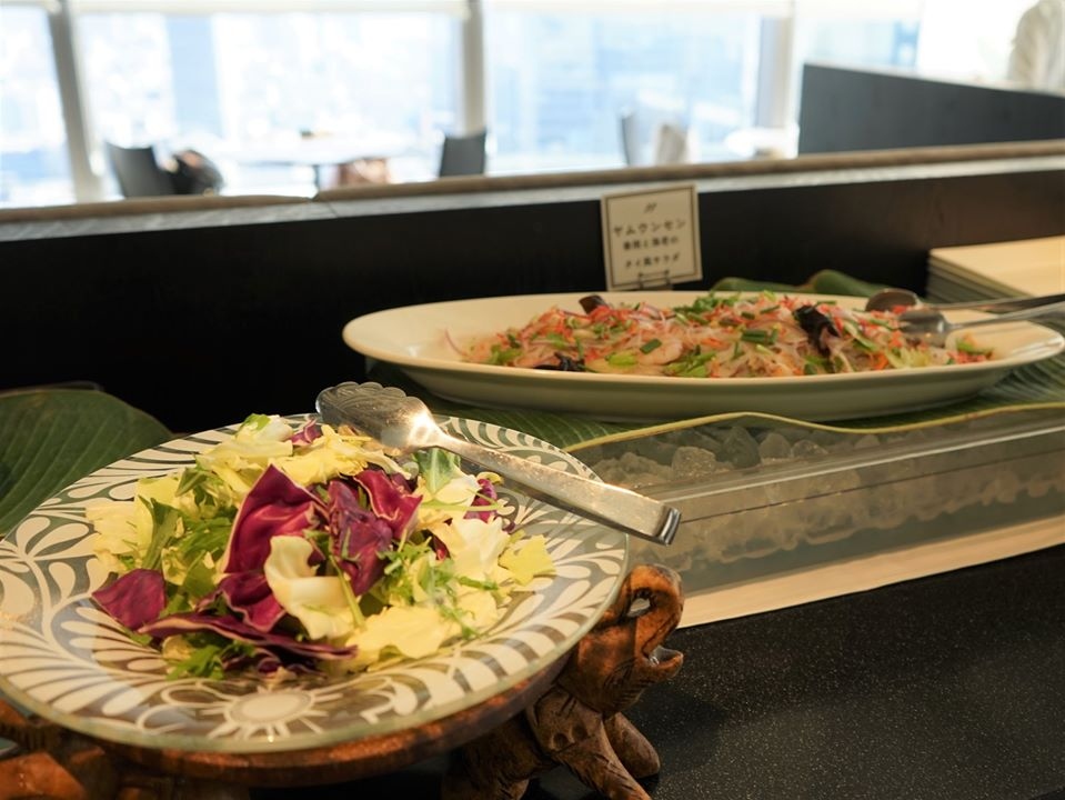 丸ビル35階にあるマンゴツリー東京。8年前妹とタイに行って以来、「行こうね」と言いながら、なかなか来れなかったランチブッフェです。1つは大人気にもかかわらず予約不可(最近、平日の予約は可能になったようです)で大行列という情報。もう1つは甥っ子たちも生まれ、子供たちには辛いタイ料理はNGかなということ。今回、甥っ子たちはお留守番で出かけました。東京駅(丸ビル地下)で10時半に待ち合わせ。ランチには早い時間ですが、マンゴツリーのランチブッフェは、大人気で開店前の10時半から行列というネット情報から10時半に丸ビル地下のエレベーター前に並びましたが、我々の前は2組、後ろも2~3組くらい・・・混んでおらず入ることができました。窓際の角という最高のローケーションの席に案内されたので、料理と一緒に景色も堪能。夜は結構なお値段のこちらのお店ですが、ランチは嬉しい値段設定でした。