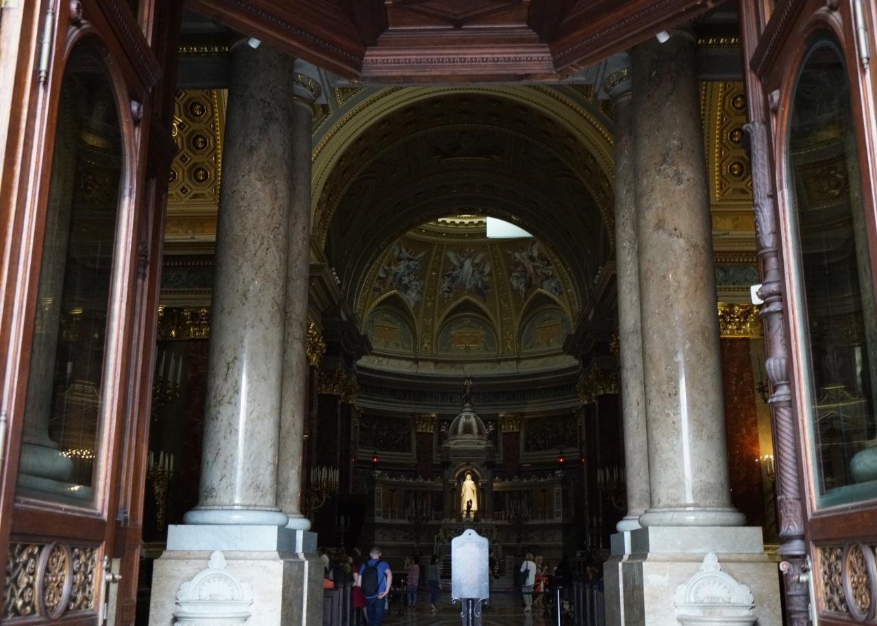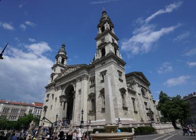 アンドラーシ通りを英雄広場に向かって歩いていたのですが、途中、大勢の人と大きな建物が見えたので立ち寄ってみました。調べてみると聖イシュトヴァーン大聖堂でした。前中、マーチャーシュ教会の前にあった銅像の初代ハンガリー王の名前にちなんでその名が付けられた聖イシュトヴァーン大聖堂。新古典主義様式で建てられており、平面図ではギリシャ十字の形をしています。地元の人と観光客で賑わっていました。外観も美しく遠くからも良く見えます。