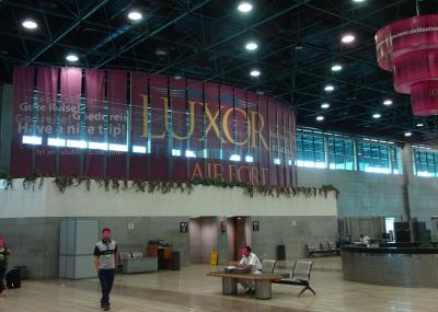 ルクソールのクルーズ船停泊していた、ナイル河岸からバスで15分ほどで空港に到着しました。割と新しい空港ですが、中はガランとしていました(朝一番のフライト)。一応、土産物屋もありました。意外に雑貨など充実していましたし、値段もお手頃です。ドル、エジプトポンド、クレジットカードが使えました。- 旅行時期