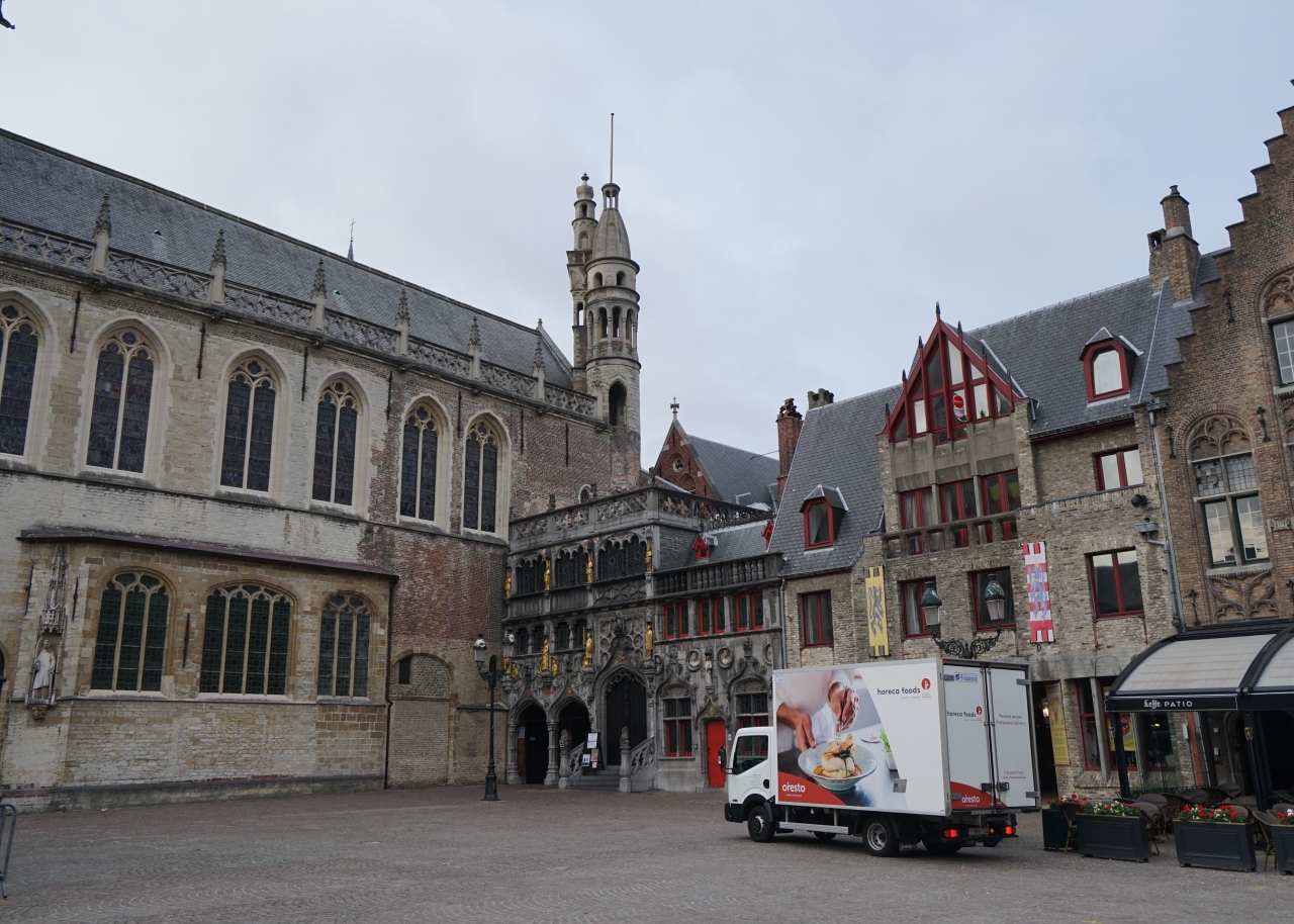 ブルージュのマルクト広場の中央に立っている銅像です。14世紀初めにフランスから侵略から守り抜いたヤン・ブライデルとピーター・デ・コーニンクというフランダース地方の英雄だそうです。夜、ライトアップされた像は周りの景色もありいい雰囲気でした。