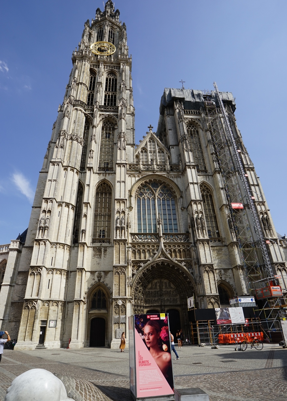 「ベルギーとフランスの鐘楼群」として世界遺産に登録されているアントワープの聖母大聖堂 (ノートルダム大聖堂)。町の守護聖人である聖母マリアに捧げられたもので、ベルギー最大のゴシック様式の聖堂。123メートルの高さを誇る塔は、47個の鐘で構成されるカリヨンをそなえており着工から約170年の歳月をかけ1521年に完成しています。
