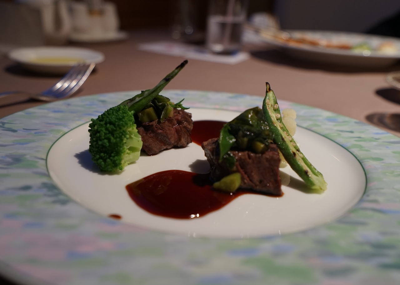 母と妹、甥っ子2人を連れてフルーツパーク富士屋ホテルに泊まりましたが、ディナーはホテル内のこちらのレストランでフレンチコースを選びました。