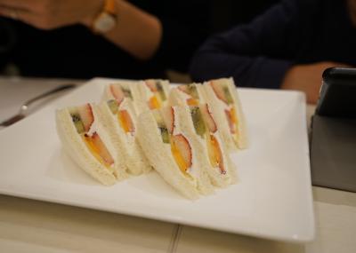 お昼前に到着したのにもかかわらず既に行列、1時間ほど待ちちょっと疲れた甥っ子ですが、フルーツサンドイッチがきた途端、ニコニコでママやおじちゃんが、一個ちょうだいと言ってもなかなかくれませんでした。