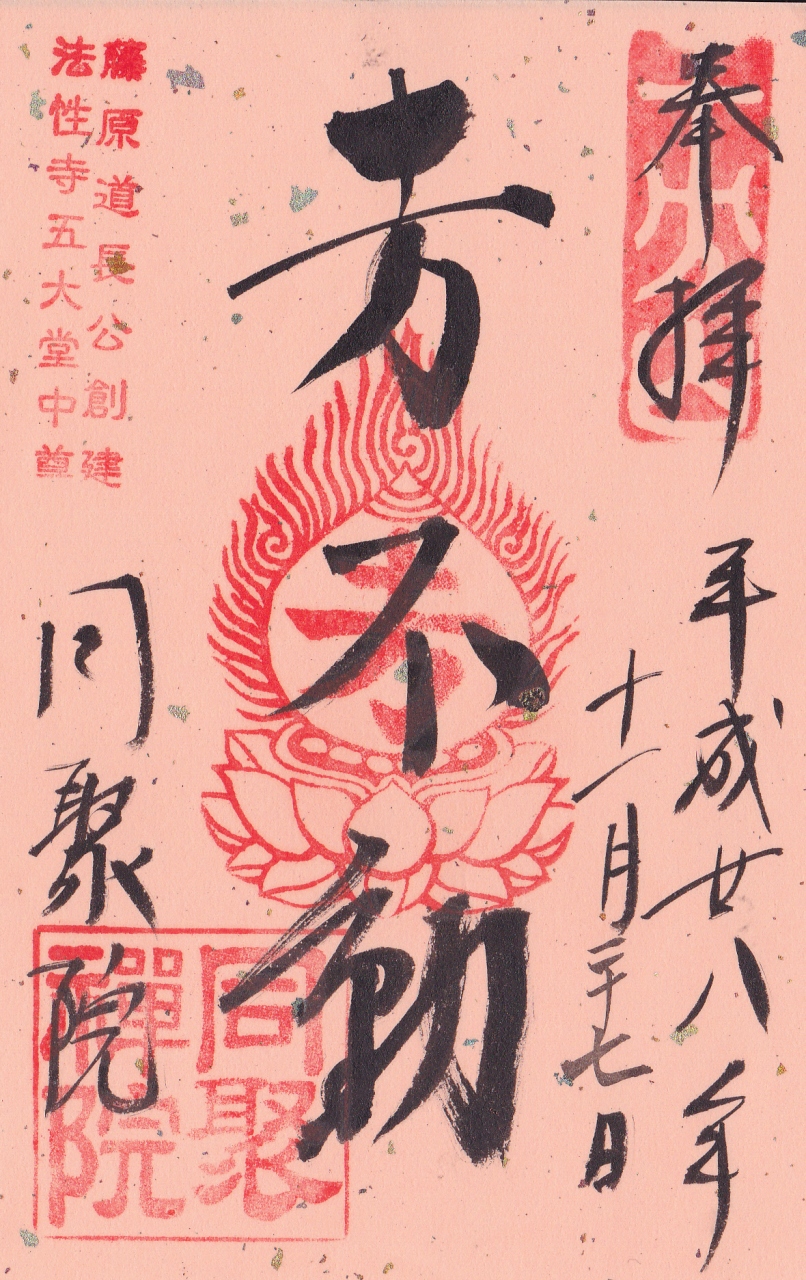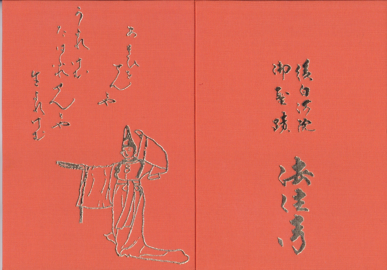 今回、後白河院の御朱印を頂こうと訪れたのですが、その他に御本尊の「身代わり不動尊」の御朱印、「南無阿弥陀仏」、「忠臣蔵」の全部で4種類の御朱印が頂け、オリジナルの御朱印帳をいただくと、表紙裏に『梁塵秘抄』の一節を書いて頂けるとのことでお願いしました。オリジナルの御朱印帳は、表紙には白拍子の舞姿と今様で知られる一節、「あそびをせんとやうまれけむ たわむれせんとや生まれけむ」の文字が書かれた素敵なものでした。- 旅行時期