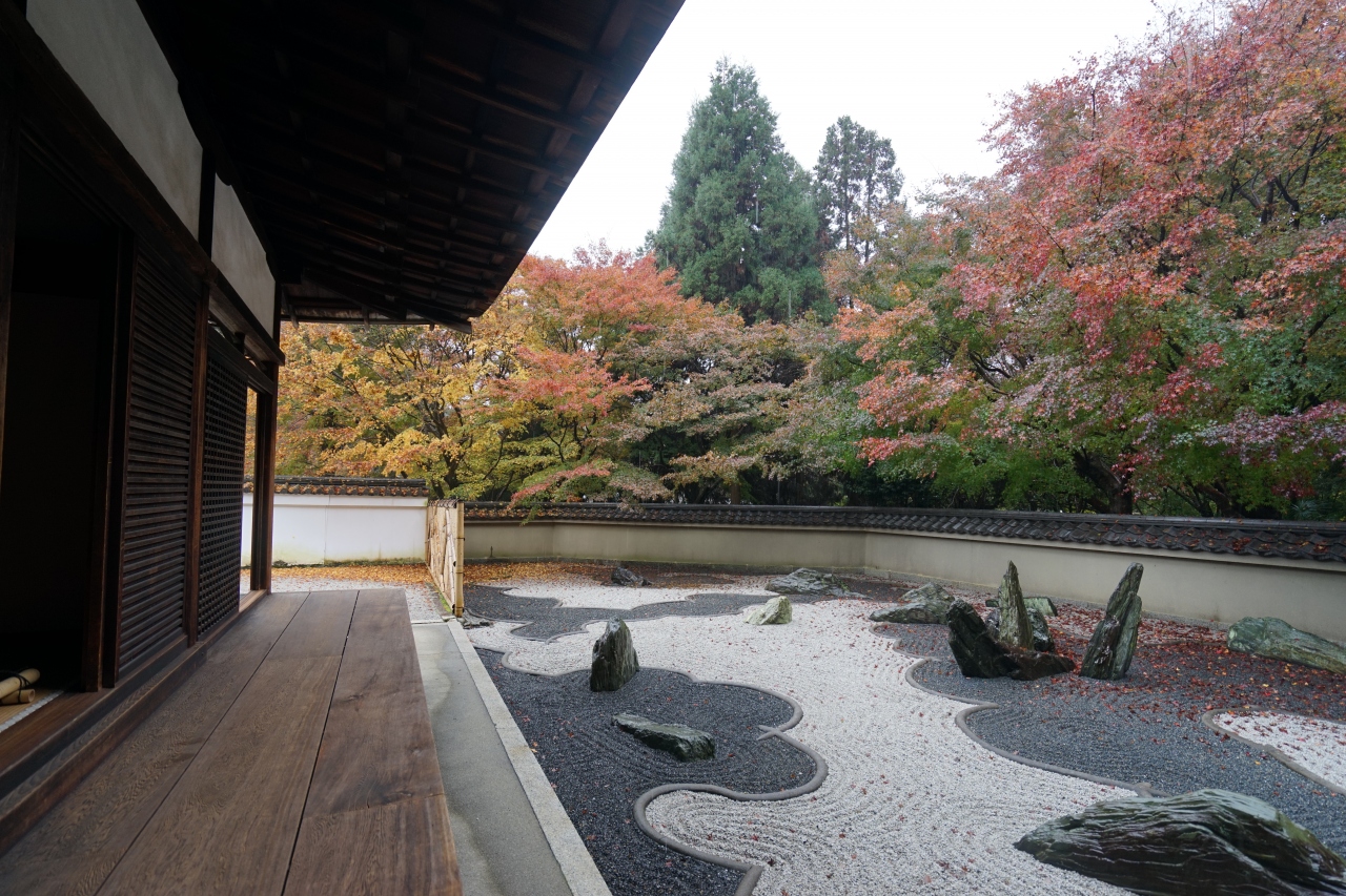 東福寺第三世住持大明国師の住居跡に建てられた「龍吟庵」、東福寺の塔頭のなかでも第一位の格式ということで、室町時代初期に建造された現存最古の方丈は国宝となっています。秋の特別拝観の時期に訪れたのですが、重森三玲の手による方丈を囲んで東・西・南の三庭からなる庭園は、みごたえがありました。