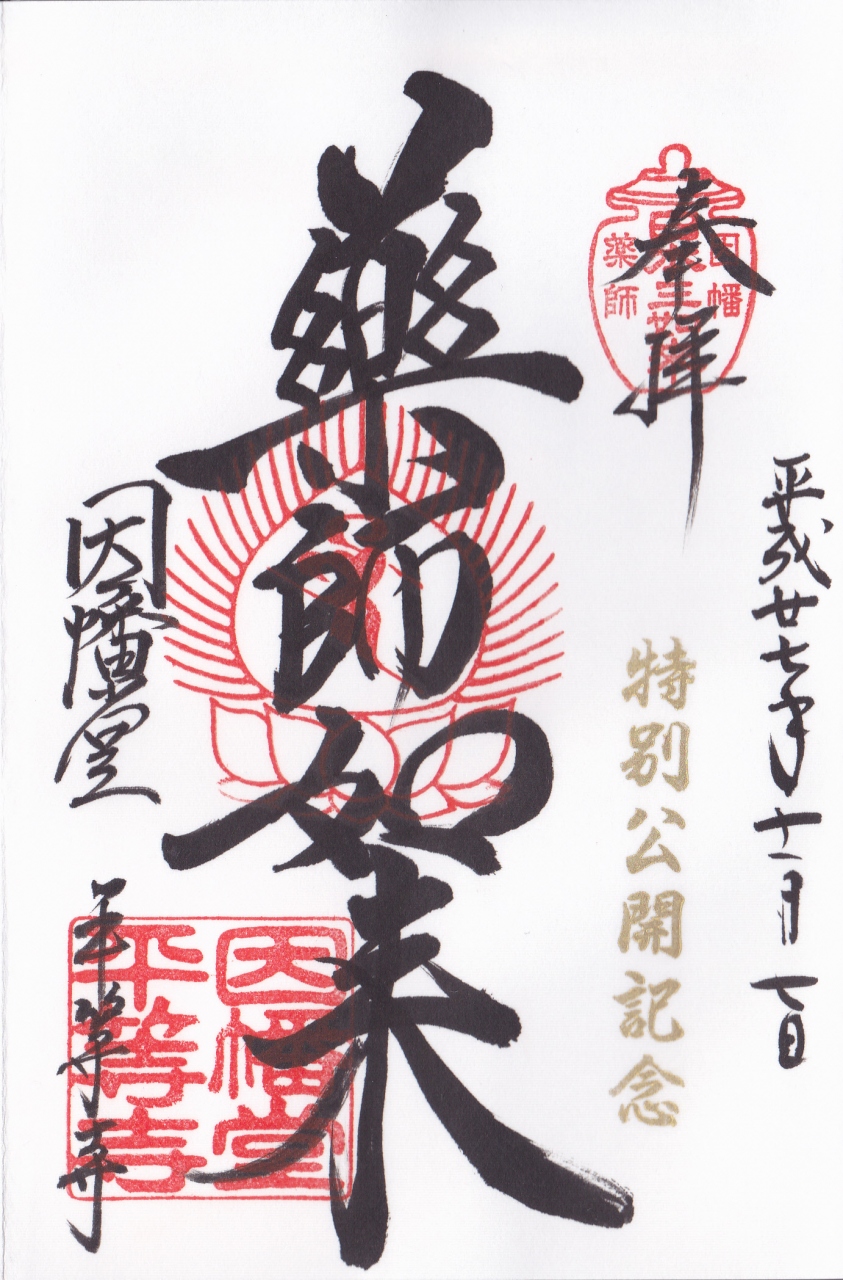 鈴木松年筆「仁王像」 や因幡国から飛んできたという霊験談がある日本三如来の一つに挙げられる薬師如来立像などが公開されていました。- 旅行時期