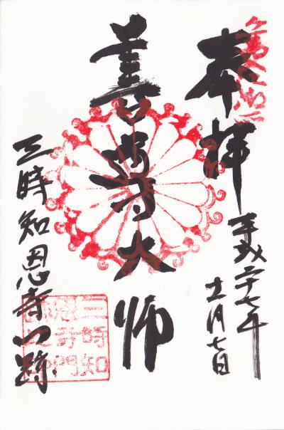 珍しい寺名の由来は、宮中で行われていた六時勤行(一日六回の念仏読経)のうち、昼の三時の勤行は、この寺で行うようにとの後柏原天皇の勅命によって、寺の名を『三時知恩寺』と改められたとのことです。- 旅行時期