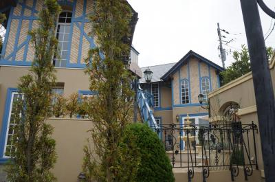 勝沼ICから釈迦堂方面へ入り両脇にブドウ畑が続く道を6~7分走るとアルプスワインの直営サロンに到着します。青い屋根のヨーロッパ風の建物のワイナリーからは南アルプスが一望できます。