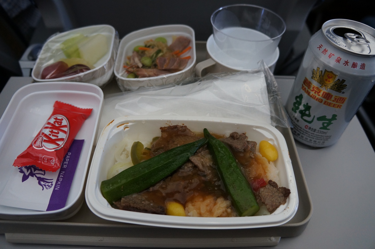 エコノミー座席配列は3-3で狭く個人用モニターも付いておりませんが、上海までは3時間半程度のフライトなので特に問題はなし。