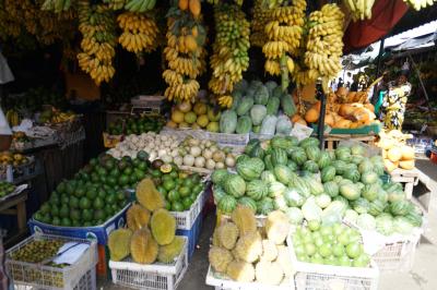 世界遺産の街キャンディの街歩きで寄りました。キャンデイ中心の市。たくさんの果物、西瓜、バナナなどが並びます。フルーツが豊富なスリランカ。パイナップルもあります。ここでドリアン買い、ホテルで食べました。
