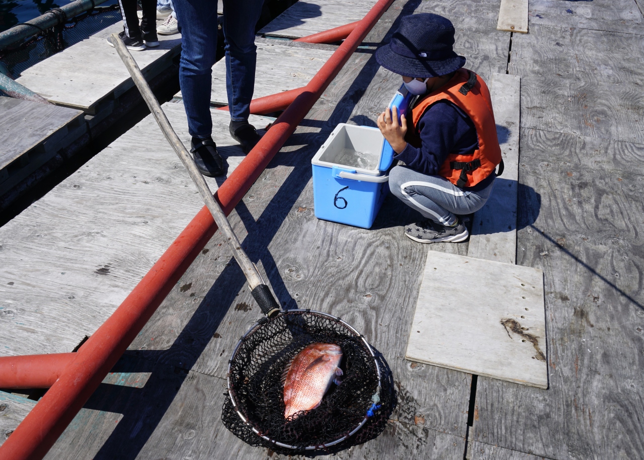 「釣竿」「えさ(オキアミ)」「クーラー」を無料で貸し出ししているので手ぶらでいけます。船で沖合い1分程の筏に渡ります。甥っ子たちは海の釣りは初めてで漁船に乗り込み大興奮でした。妹と甥っ子2人は、リールのついた竿で釣るのは初めてということで様子が全くわからなく手間取っていましたが、それぞれ鯛1匹づつ釣り上げ大満足のようでした。- 旅行時期