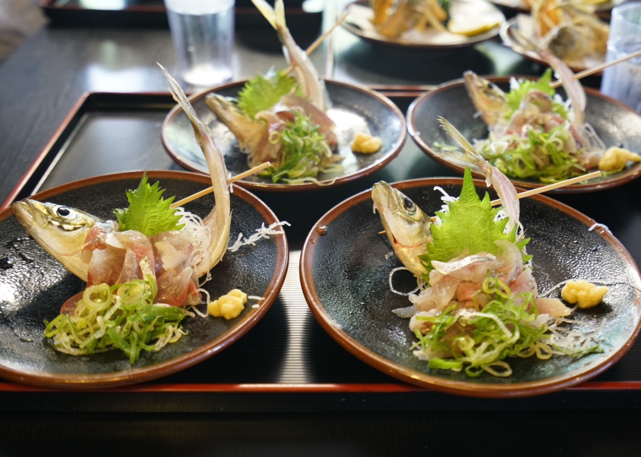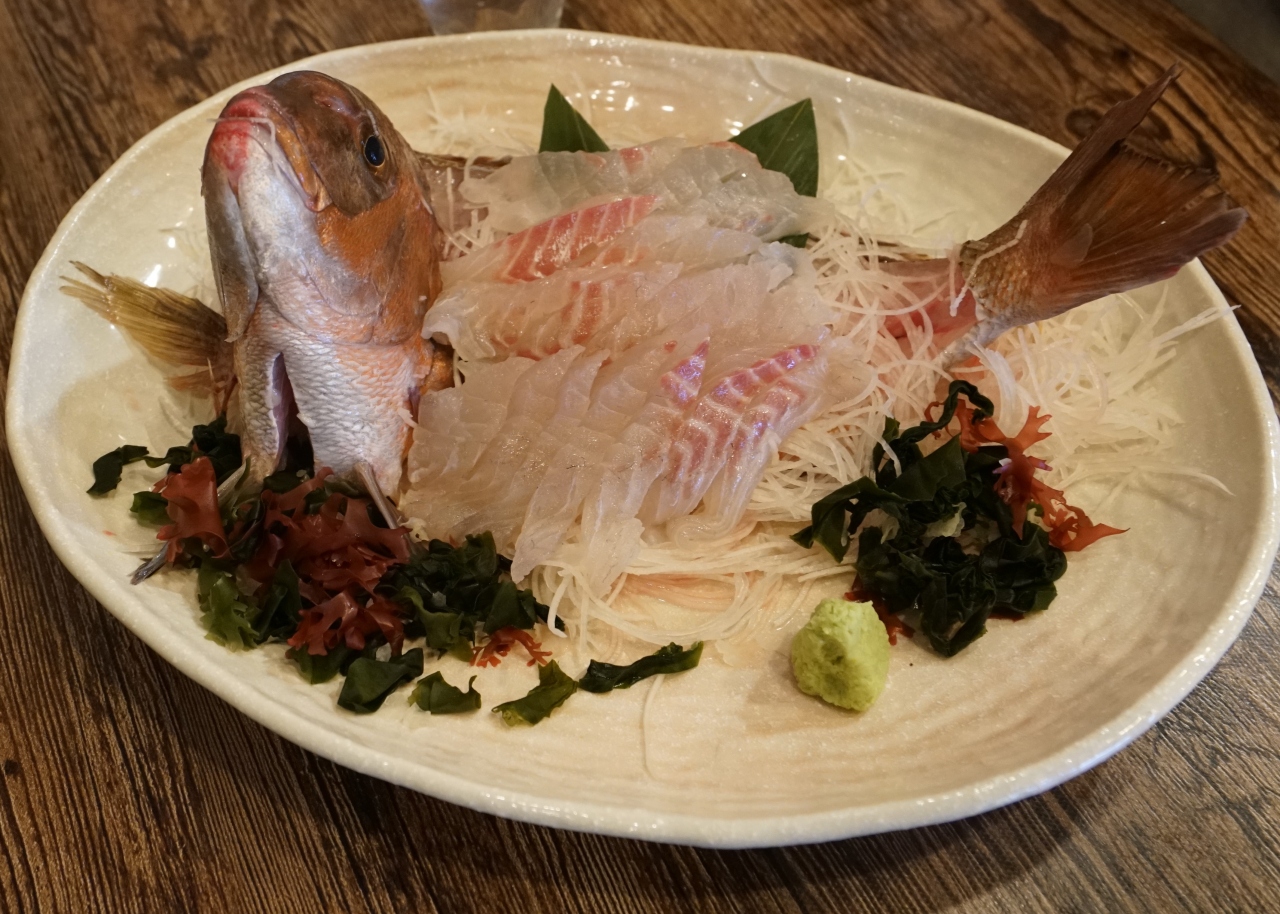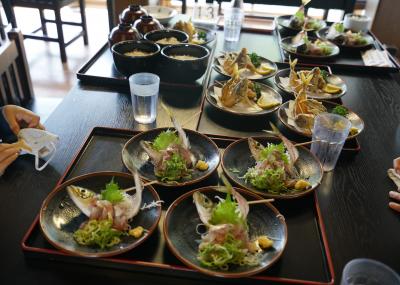 網代の港の海上釣り堀「筏釣りの東海」さんで、釣りをした後、こちらのお店漁師家 大次郎丸へ持ち込み調理していただきました。