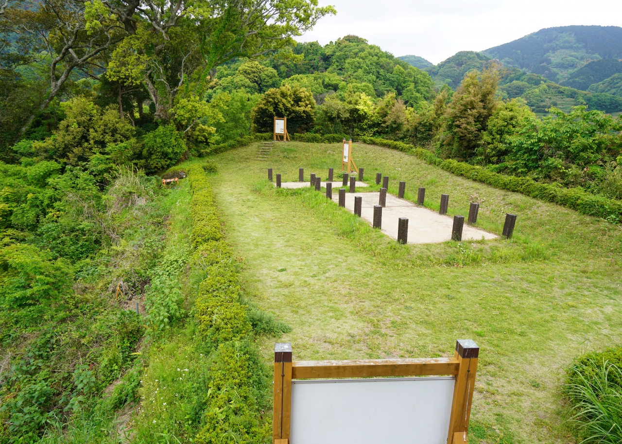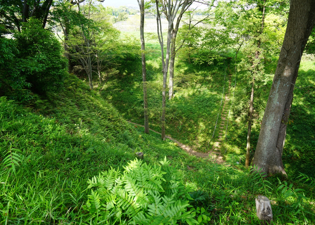 興国寺城は、市西部の愛鷹山の尾根に築かれ、戦国時代に関東一円を支配した北条氏の祖、早雲の旗揚げの場所とされています。さらに天文18年(1549)には今川義元によって本格的な城普請が行われ、その後慶長12年(1607)の廃城に至るまで、今川→北条→武田→徳川→豊臣(中村)→徳川(天野)と支配者が次々と入れ替わりながらも、一貫して東駿河の拠点城郭として機能しました。今も良好に残る遺構群に加え、このような歴史的背景から1995年には国史跡として指定されており、以後沼津市教育委員会による発掘調査が行われています。アクセスですが、国道1号バイパスを沼津から富士方面へ原東町信号を右に曲がり興国寺城どおりを突きあたり(根方街道)まで進みます。根古屋の信号あるところが興国寺城跡になります。登城口に何ヵ所か駐車スペースがあります。