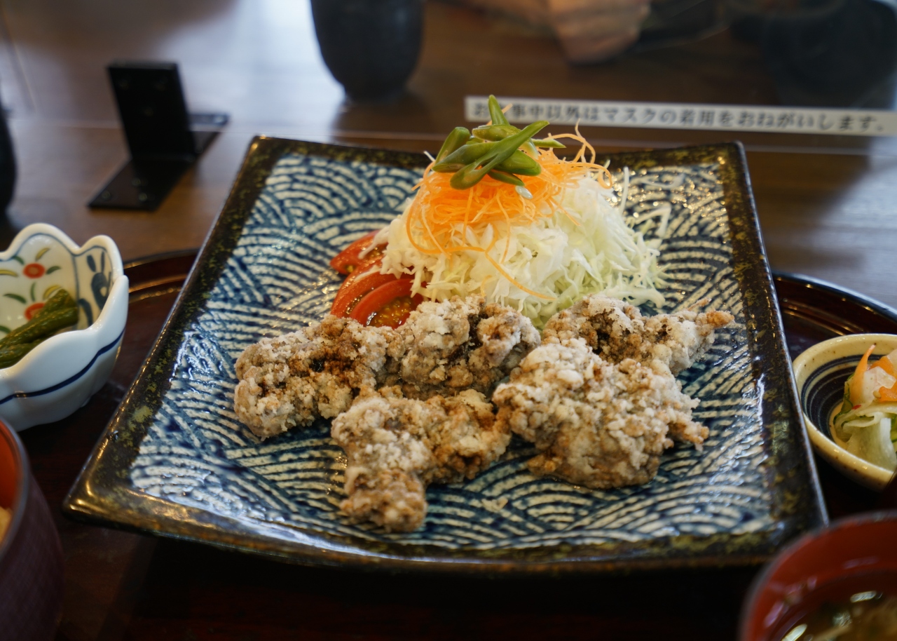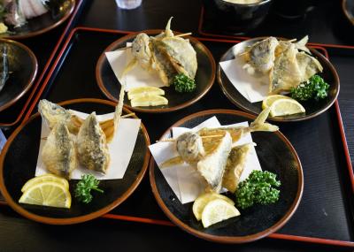 私が頼んだのはくじらの竜田揚げ定食。妹がたのんだのが「お刺身定食」。食後の落花生ソフトも含め、どれもとても美味しかったです。- 旅行時期