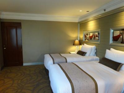 部屋は、キレイだけど、洗面エリアとベッドエリアの仕切り扉が全部閉まらなかったり、テレビが斜めってるなど、ちょっとアレってところあり。