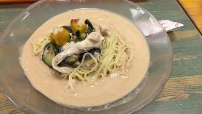 今回は軽めのランチで、豆乳味ソースの冷麺風パスタを食べました。安いのでこんなものかという味ですが、汁そば好きの子供はドーナツセットで喜んでいました。- 旅行時期