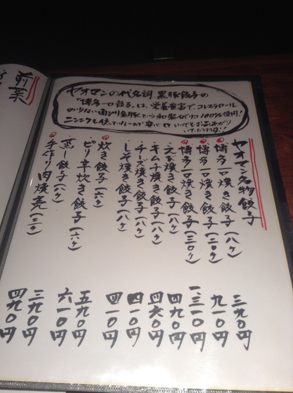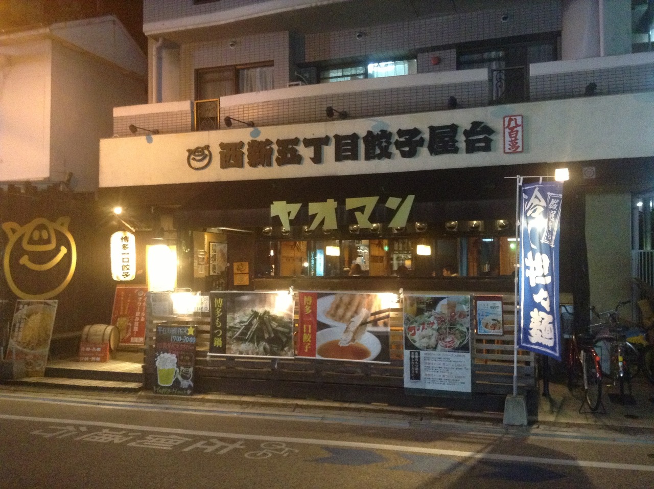 西新五丁目餃子屋台ヤオマンは、西新の早良郵便局近くにある居酒屋です。屋台とつきますが、普通に店舗はあります。
