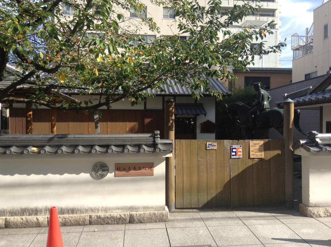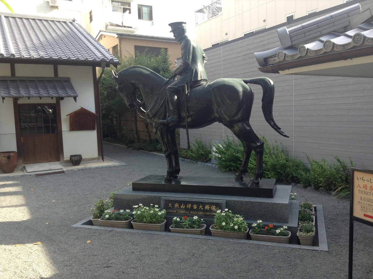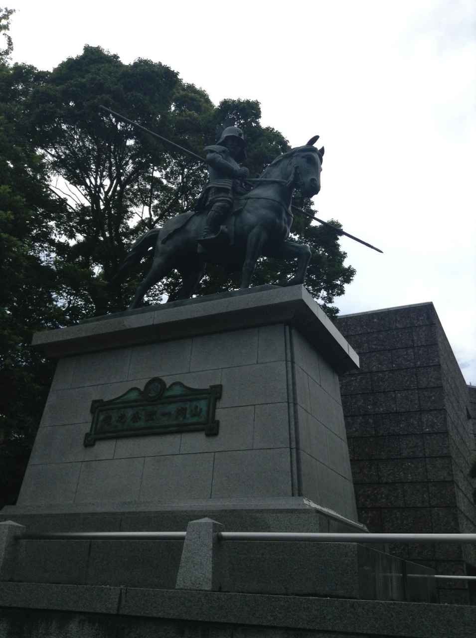 山内一豊像は、高知城下の県立美術館に行く途中の堀端にあります。馬に跨り、槍を構える姿は勇壮です。