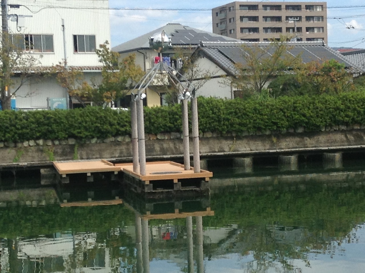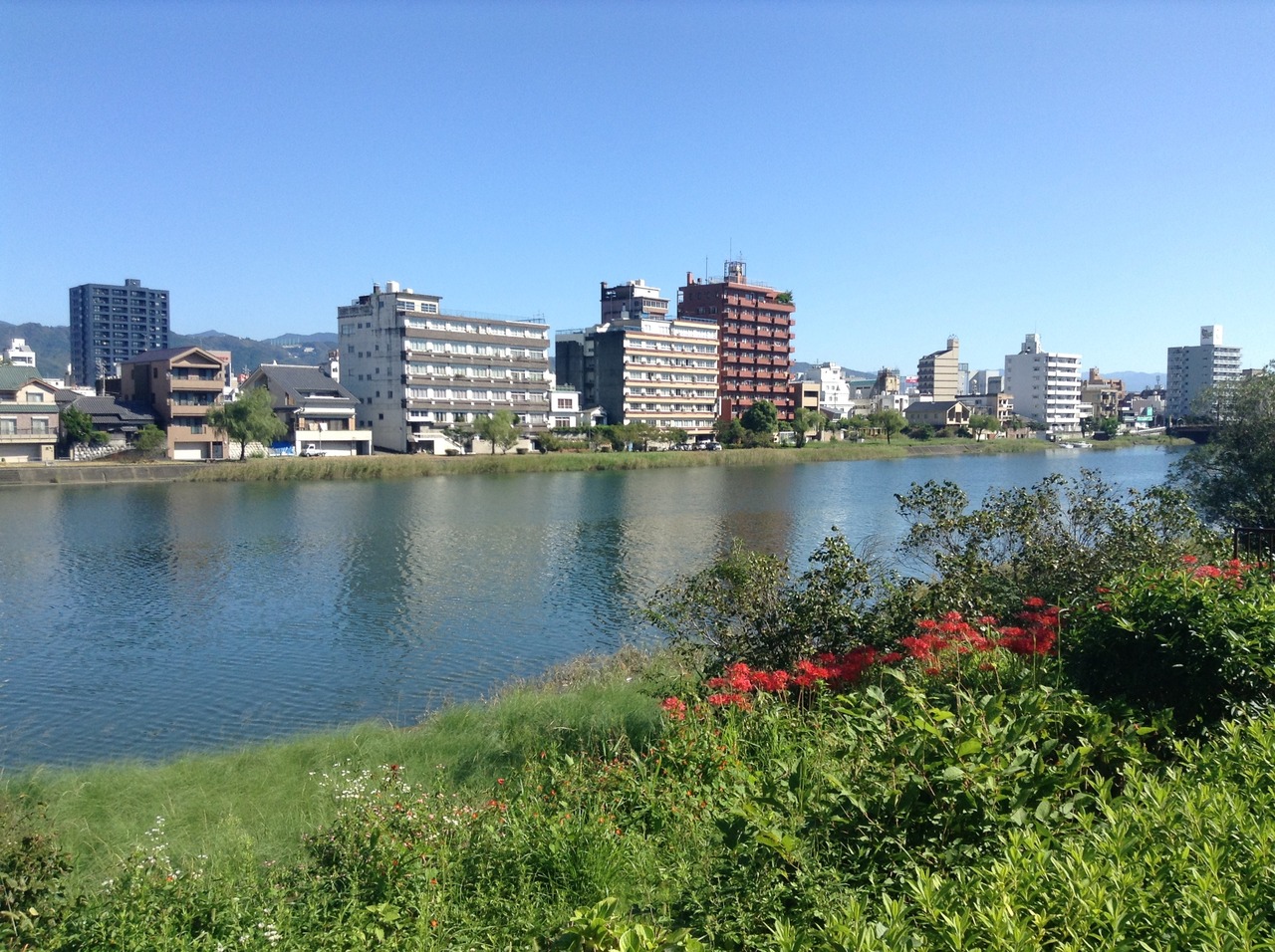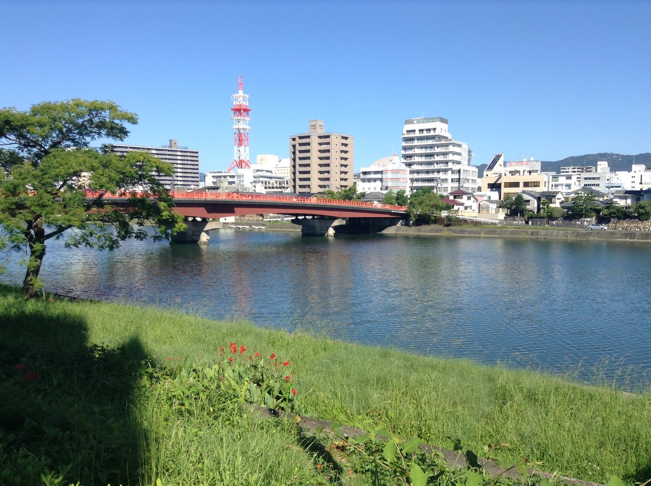 山内一豊像は、高知城下の県立美術館に行く途中の堀端にあります。馬に跨り、槍を構える姿は勇壮です。