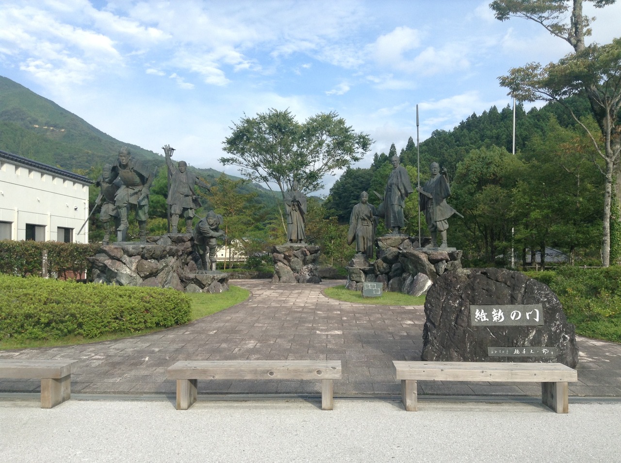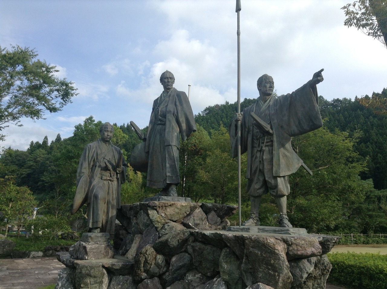 坂本龍馬、沢村惣之丞、吉村寅太郎などの梼原町所縁の幕末の志士を顕彰する銅像が建っています。