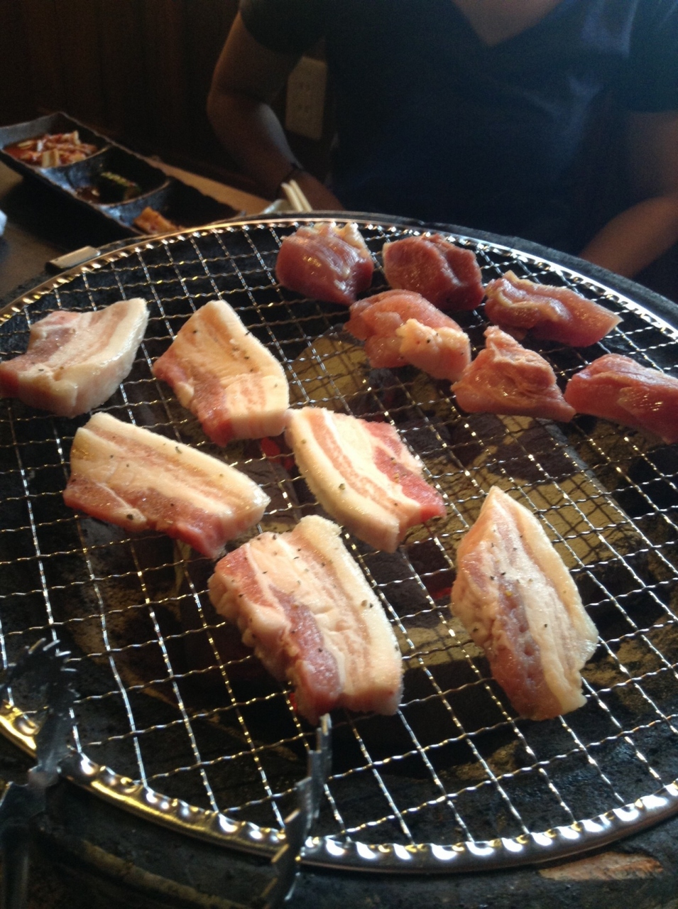 カルビが580円からで、中落ちカルビ、豚バラ、鳥もも、上カルビを注文。普通のカルビと上カルビでは倍値段が違いますが、どちらも値段相応に美味しいです。