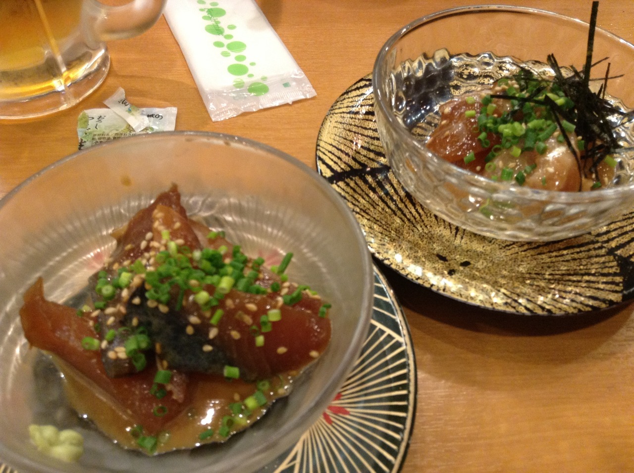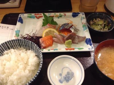 天神ゆの華の帰りにランチに立ち寄り、刺身定食1080円を注文。鯛、サーモン、鯵、鯖、イサキの刺身に、あら汁、ご飯の内容。やっぱり福岡の鯖は美味しいですね。テレビでも取り上げられていた海鮮丼がお勧めのようなので、次はたのんでみようと思います。- 旅行時期