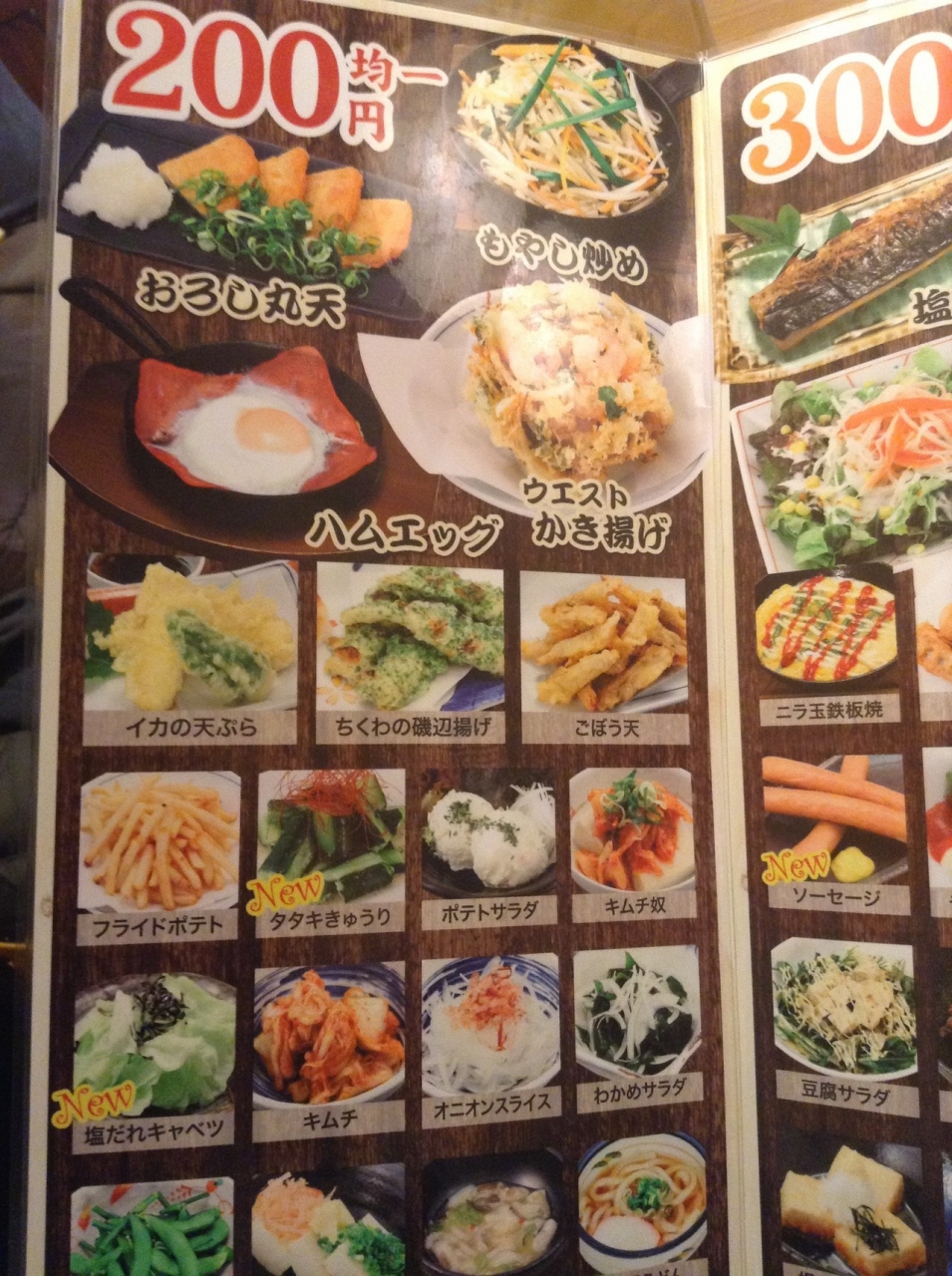 おつまみが200円、300円、400円の均一メニューで、安くてお得感があります。味も悪くないです。