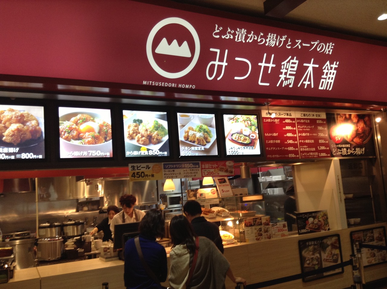 みつせ鶏本舗は、鳥栖プレミアムアウトレットのフードコートにある三瀬鶏を使用した唐揚げのお店です。天神の新天町にもお店があります。アウトレットに立ち寄りの際に、軽めの夕食で利用しました。唐揚げ丼を注文。