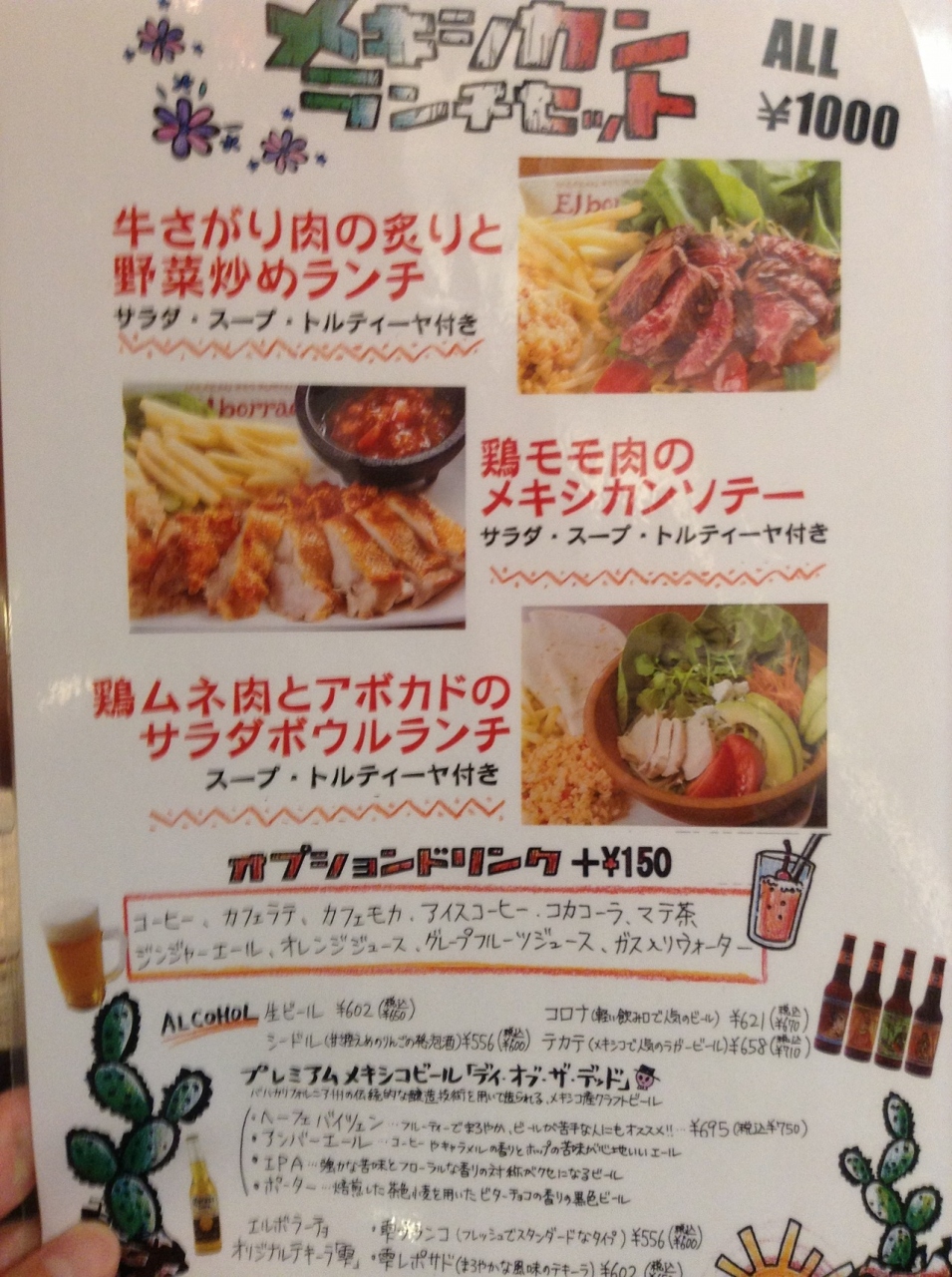 今回はランチで利用し、牛さがりのタコスプレートランチを注文。税込1000円で、150円プラスしてアイスカフェラテを追加。