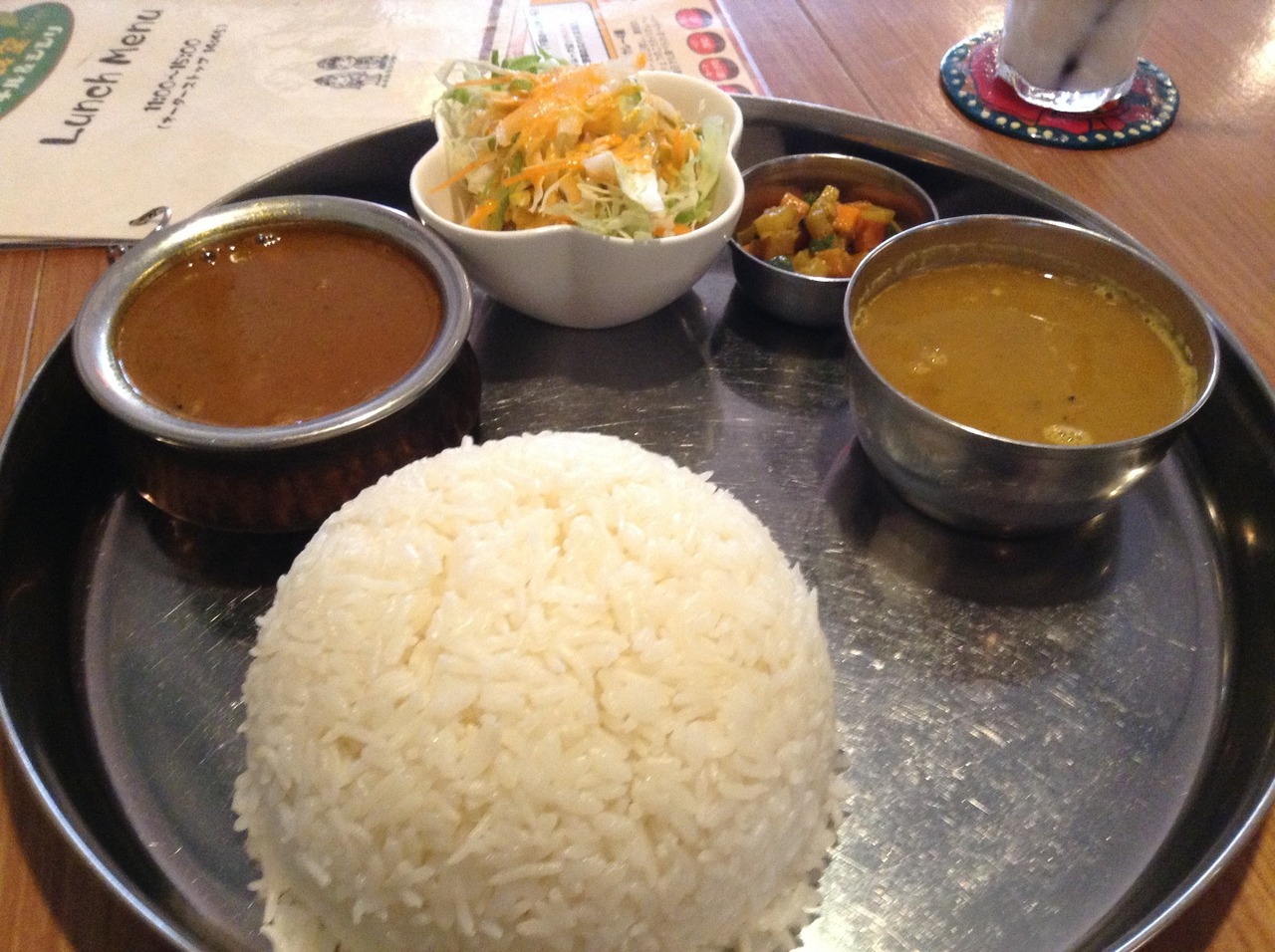 スープ状のダルカレーに、チキンカレーを選択。ナンかご飯は、ご飯にしました。ご飯はインディカ米です。カレーの味は悪くないですが、近隣ではアバシやシブシャンガルといった他店の方が好みでした。- 旅行時期