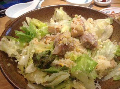 チャーハンは、レタスが大量にのっていて、かき混ぜて少ししんなりしたところを頂きます。