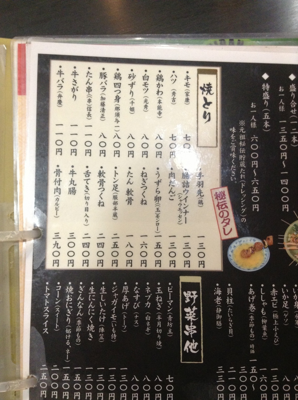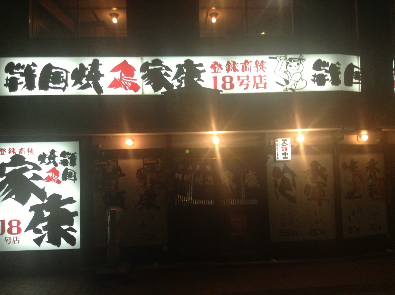 戦国焼鳥家康18号店は、祇園駅から徒歩3分ほどの大博通沿いにある焼鳥屋さんです。福岡の目立たないチェーンで、串物は70円からと、とにかく安いです。