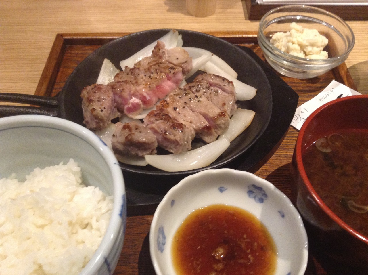 十一(といち)は、赤坂駅直結の西鉄ビル地下にある豚ステーキのお店です。ランチで訪問しましたが、メニューは豚ステーキのランチ一品のみで、注文して直ぐにでてきました。