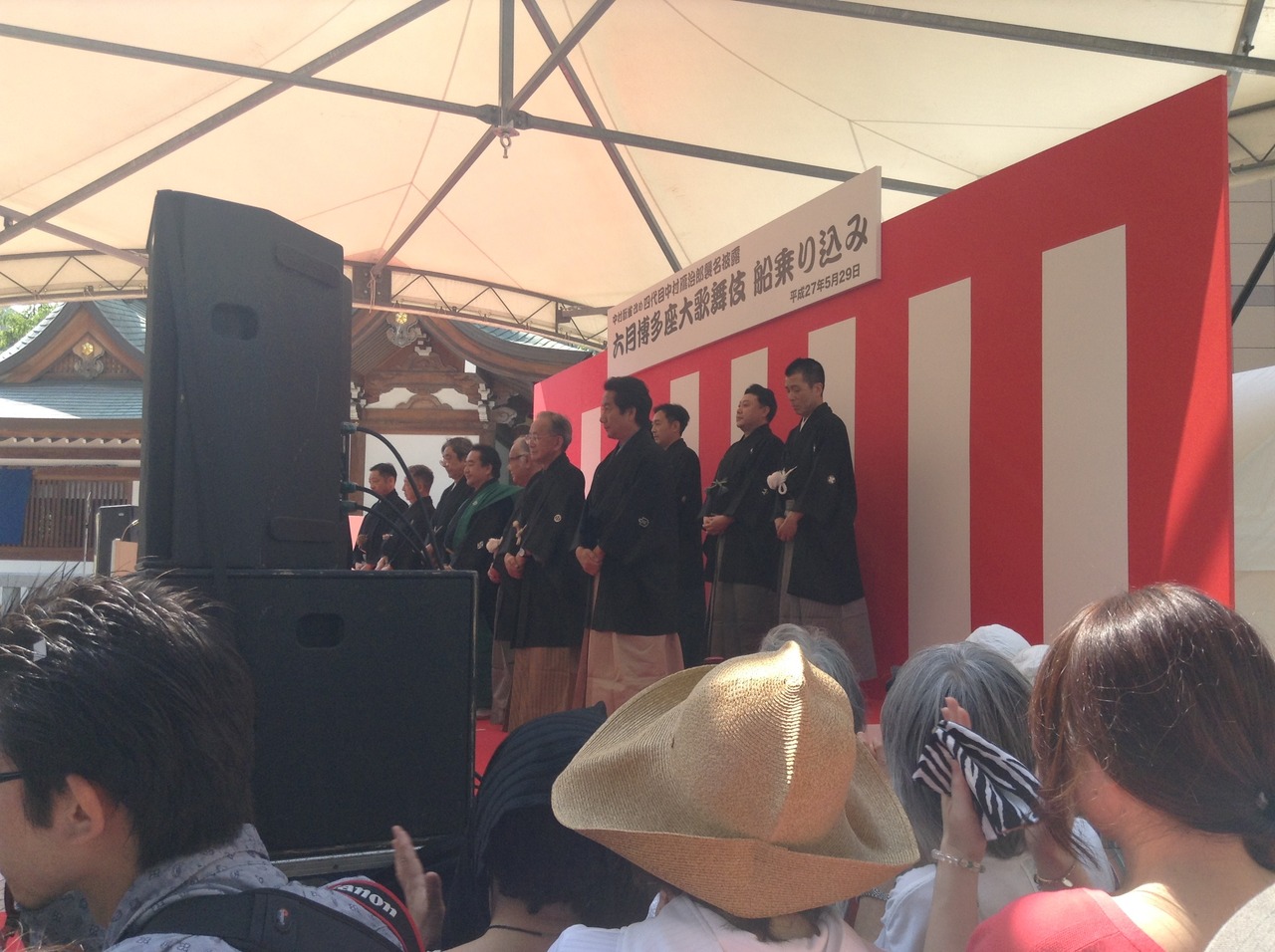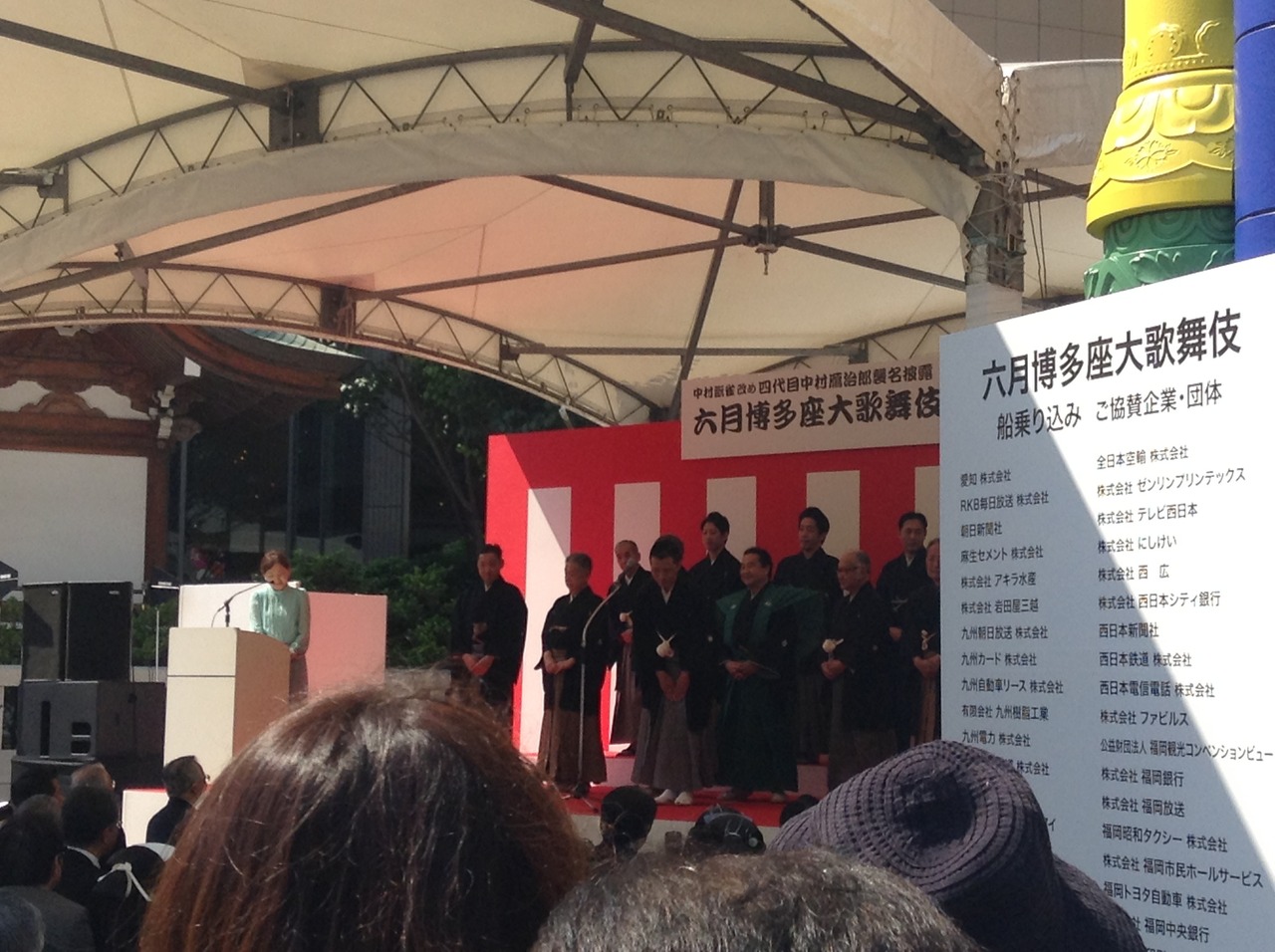 博多座船乗り込みは、5月下旬に行われる歌舞伎役者がキャナルシティから博多座までを船に乗り、顔見せするイベントです。今年は5月28日でした。